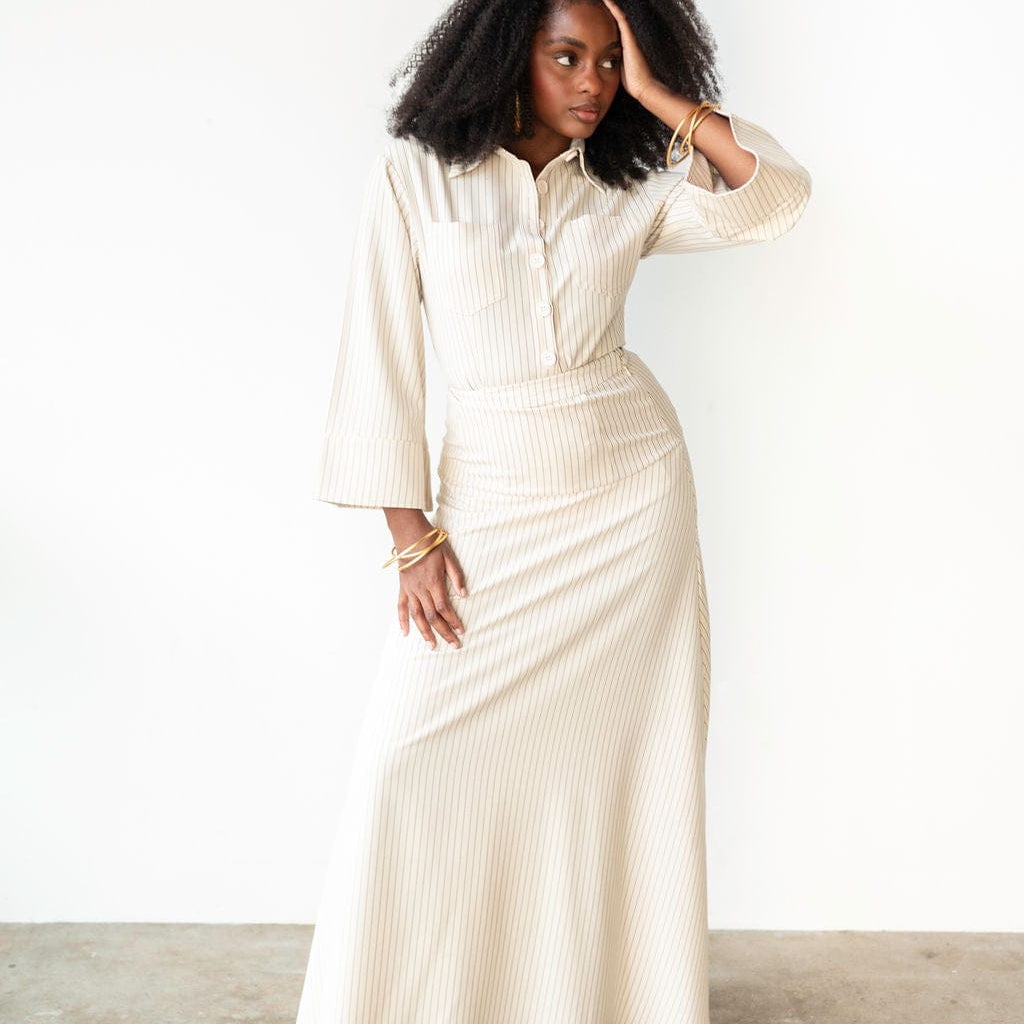I wish I bought this set in the other color. It's too pretty to have just one! Pairs nicely with the skirt. Effortlessly classy!