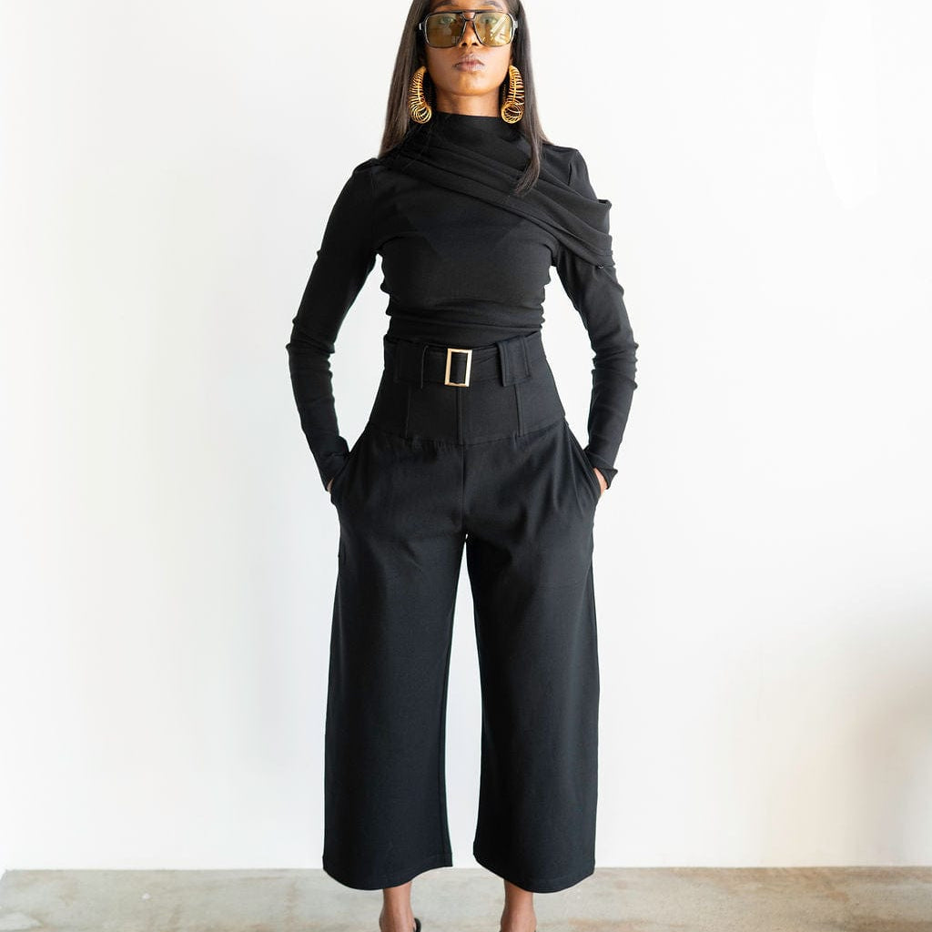 This outfit was such an elegant and classy look, i wore it to an all black wedding. The fabric is super soft with good stretch; sufficient lining in the skirt, and the length was really good even though i am on the shorter end. The gold buckles elevated the look and I cannot recommend this outfit enough. It is super classy, stylish and such a lovely outift.
