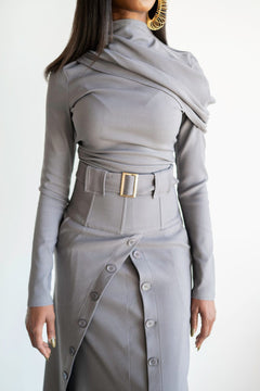 Elevate your wardrobe with the Nia High Waisted Corset Barrel Cropped Pants in Grey. These daring pants feature a unique barrel silhouette and a high waist that sculpts your figure. Perfect for dressing up or down, they effortlessly pair with the Nia top to create a bold, unforgettable look. Make a statement with every step.