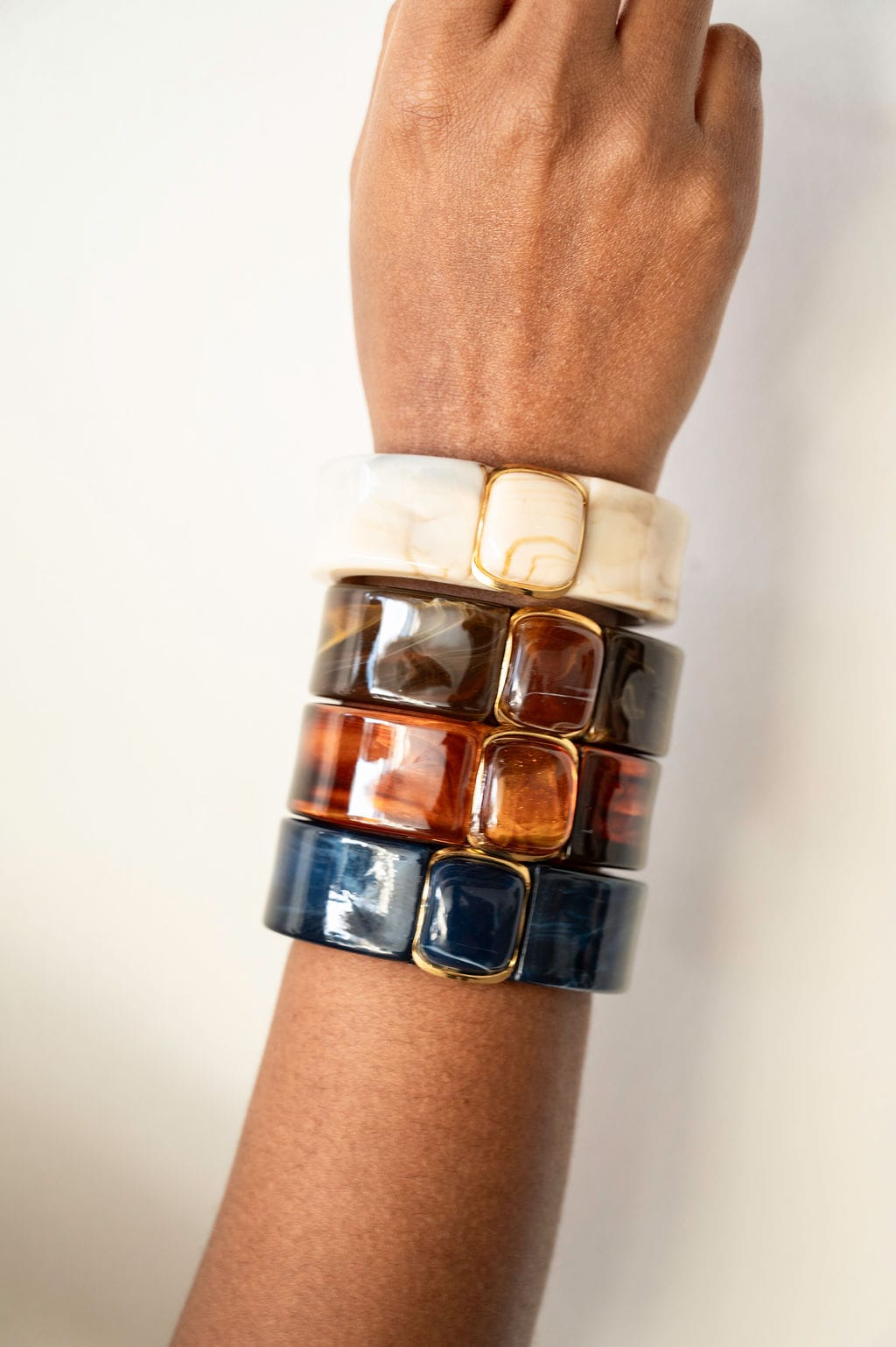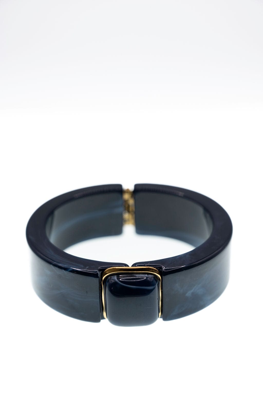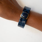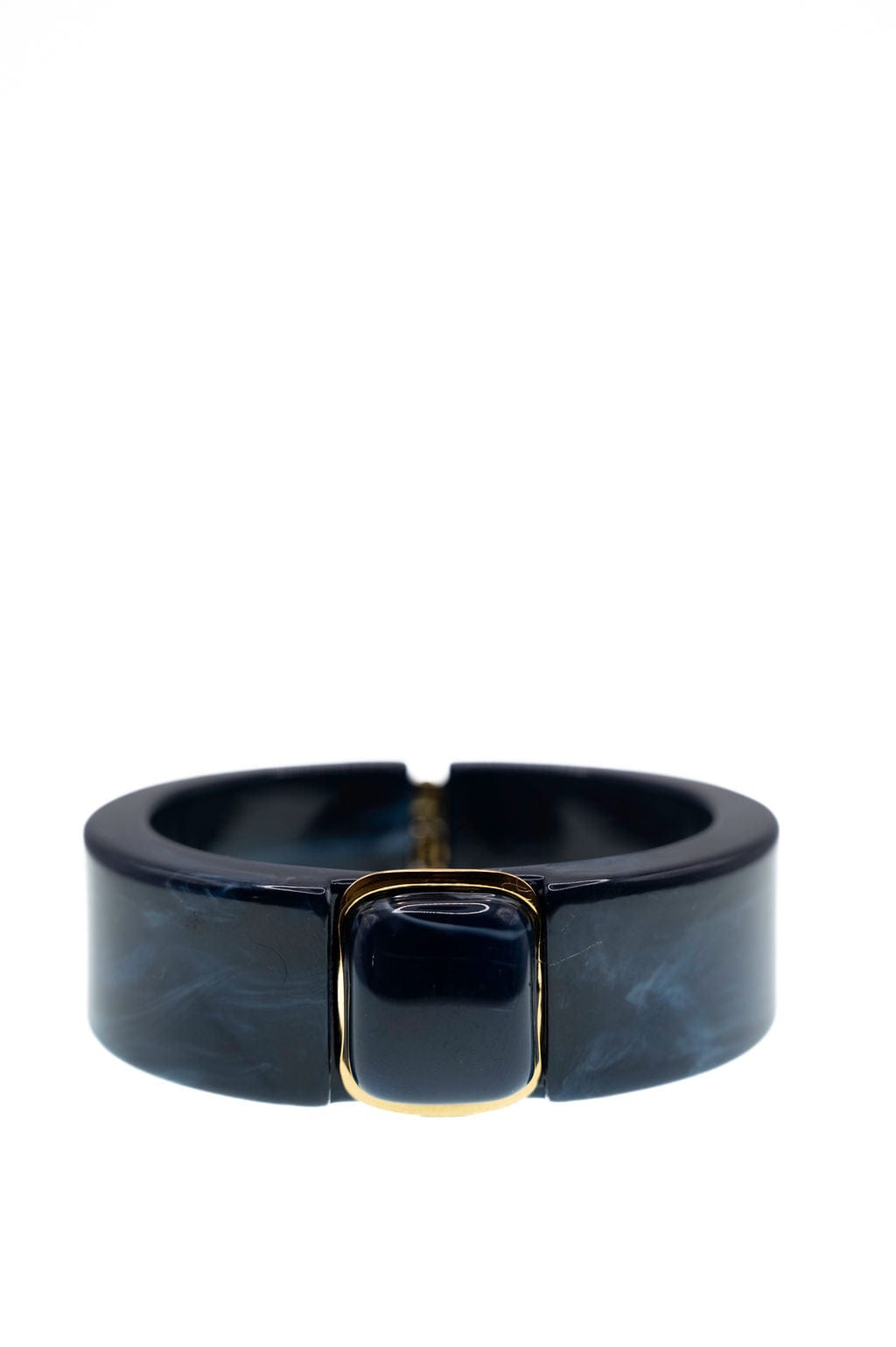 We all know the perfect accessory isn’t always subtle sometimes it’s meant to stand out. This midnight resin bracelet is designed to make a refined statement with its deep blue marbled tones and sleek geometric form. The glossy finish and gold-accented centerpiece create a rich, modern look that adds effortless elegance to both casual outfits and sophisticated evening styles.