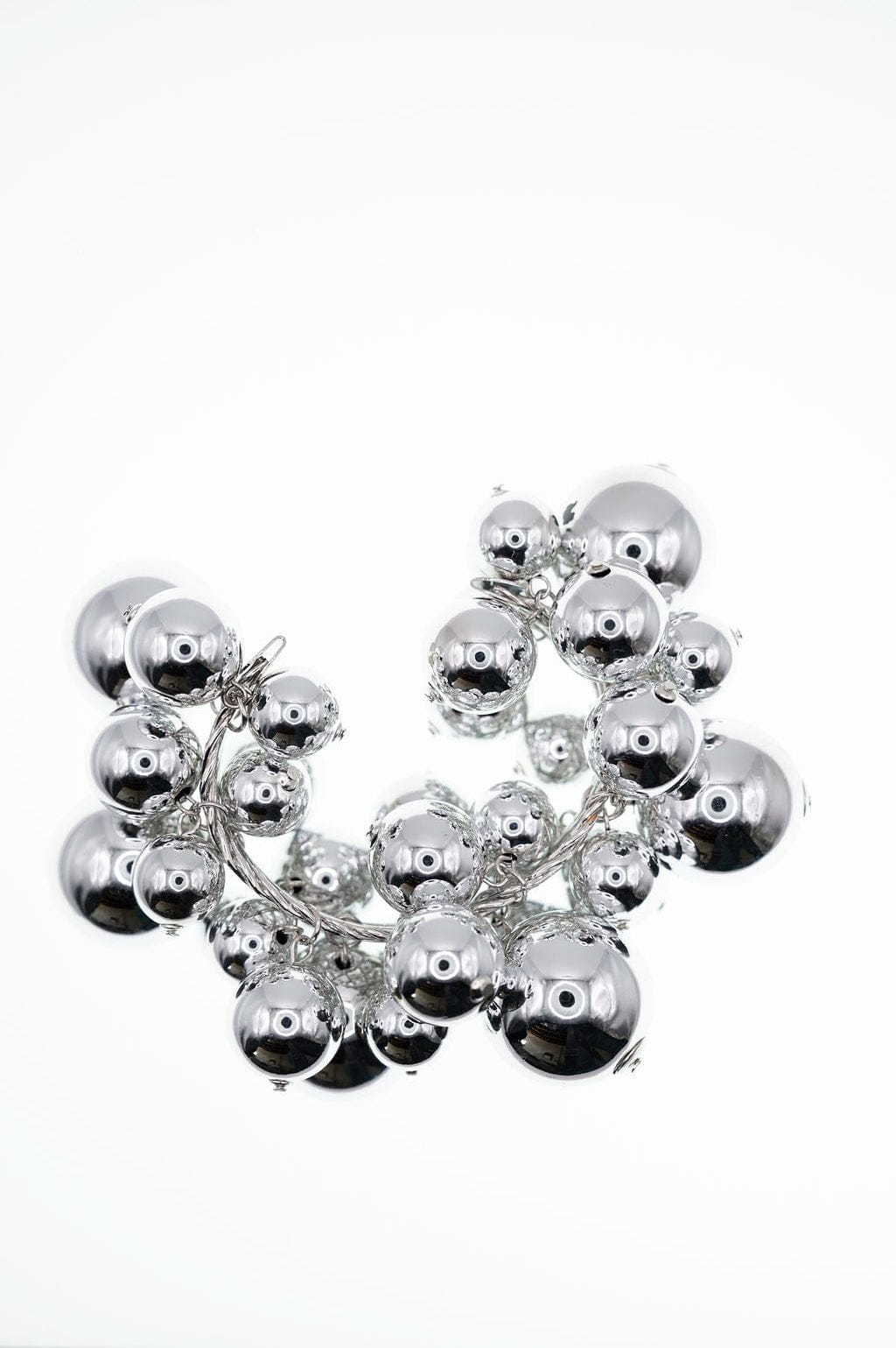 We all know the perfect accessory isn’t always subtle sometimes it’s meant to stand out. This bold silver bubble bracelet is designed to make a striking impression with its modern, sculptural cluster of polished metallic spheres. The reflective silver beads catch the light beautifully, adding a confident and luxurious touch to both casual outfits and elegant evening looks.