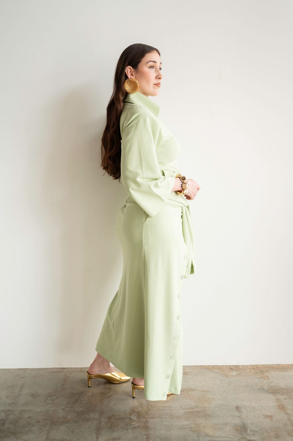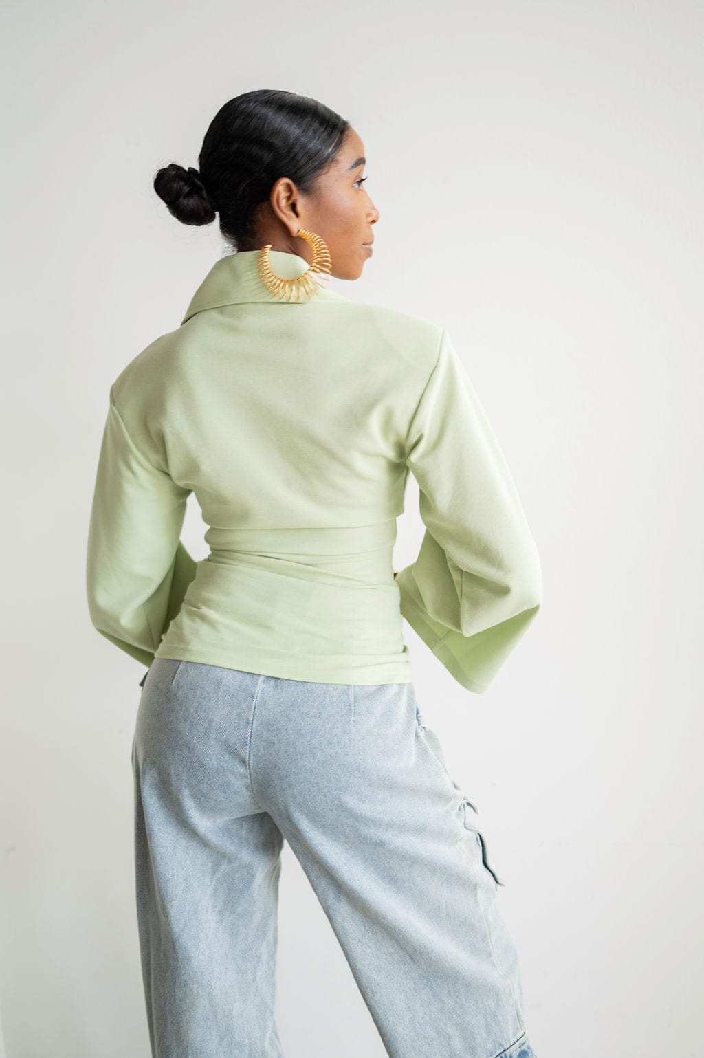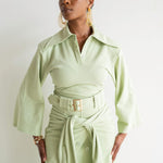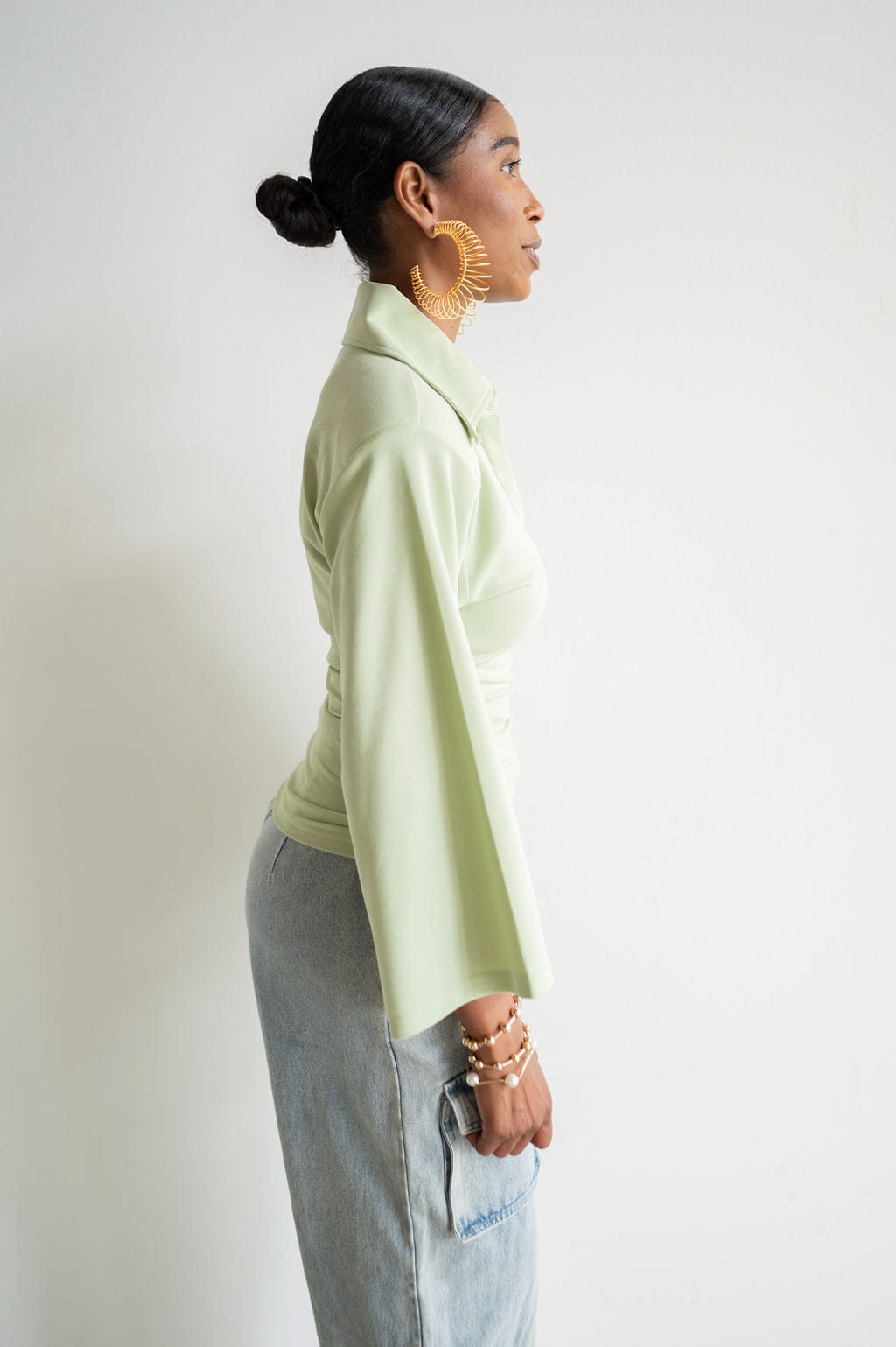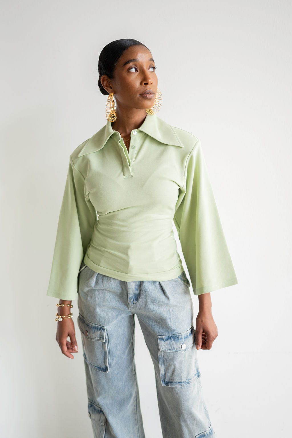 Inayah Exaggerated Collar Polo Shirt Sage Green