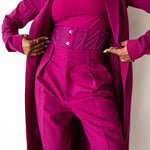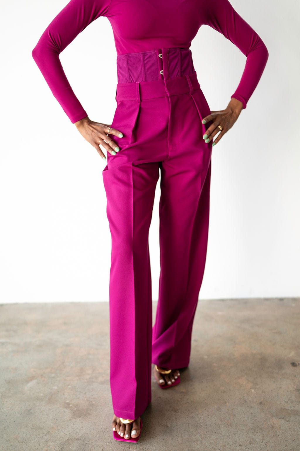 Transform your style with our Amaya Power Suit Corset Pants. The mesh corset waist adds a touch of edginess to the wide leg design. These pants provide both comfort and sophistication, perfect for any occasion. Mix and match with other pieces for a versatile and unique outfit. For ultimate style, pair it with our Amaya Cropped Blazer. (Because who says you can't be comfy and chic at the same time?)