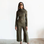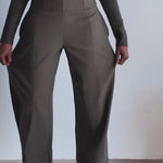 Nia High Waisted Corset Barrel Cropped Pants in Olive Green