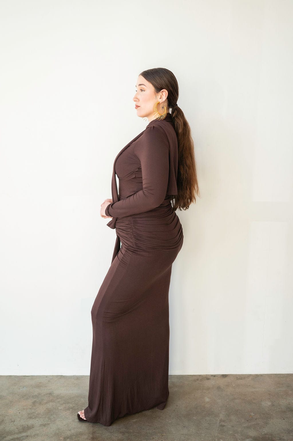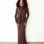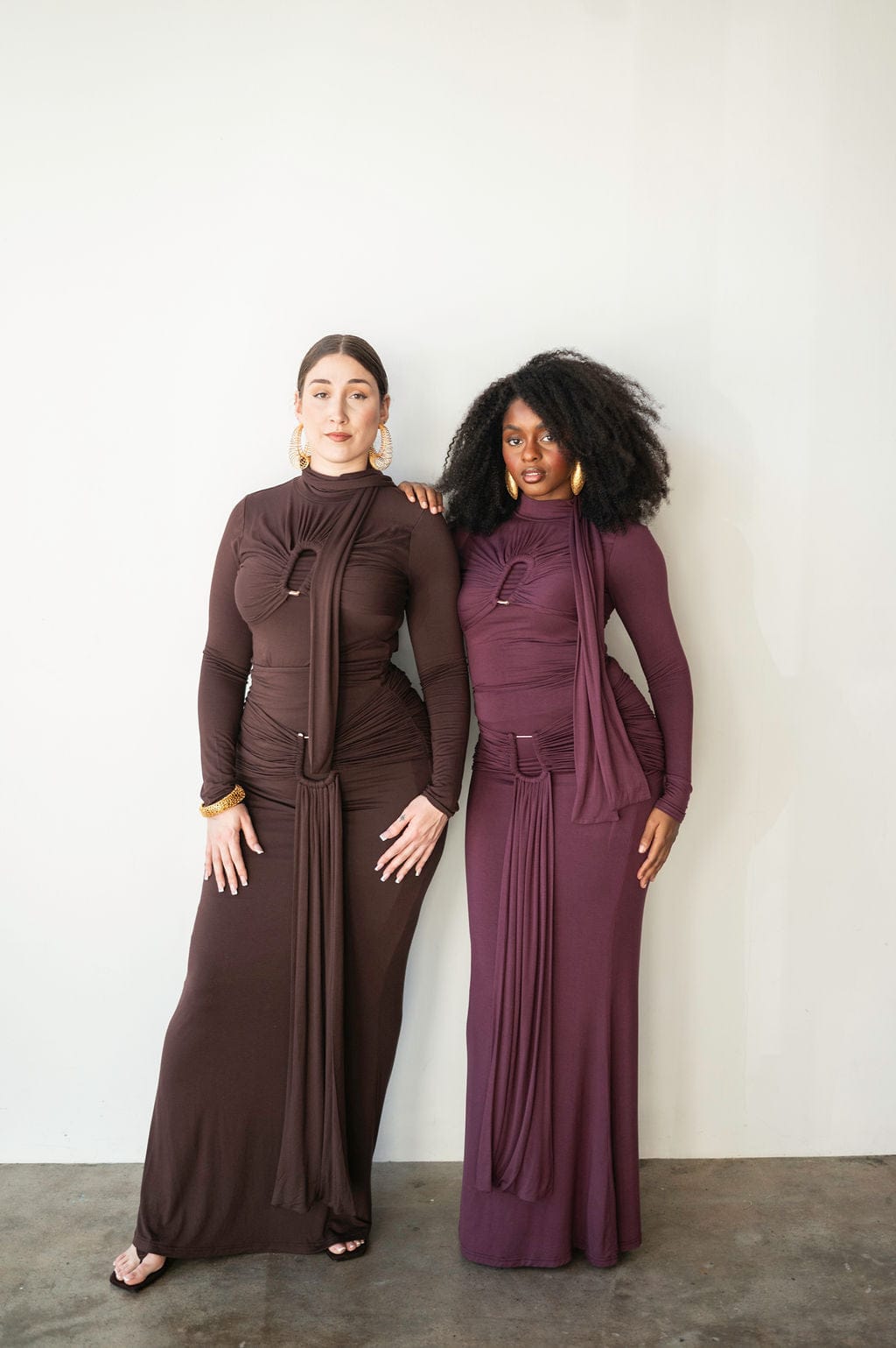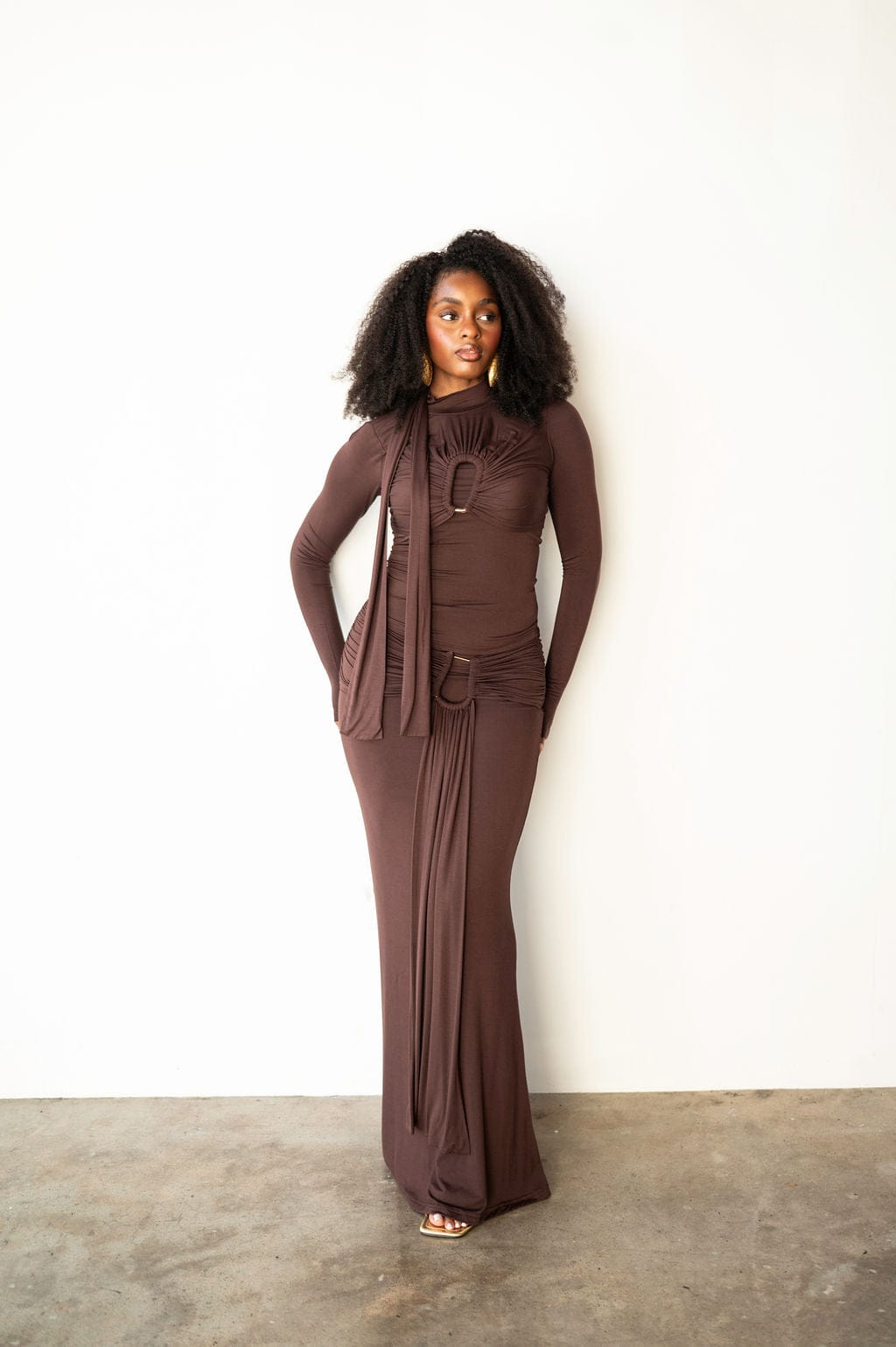 The Mila Draped Maxi Skirt features an elegant, flowing silhouette that moves with effortless grace. Crafted with quality hardware and thoughtfully draped fabric, this skirt offers a sophisticated drape that flatters every frame. Its unique construction creates dimension and visual interest, making it a standout piece in any wardrobe. Pair it seamlessly with the Mila Long Sleeve Top for a cohesive, polished look that transitions beautifully from day to evening. Perfect for those seeking refined style with modern edge.
