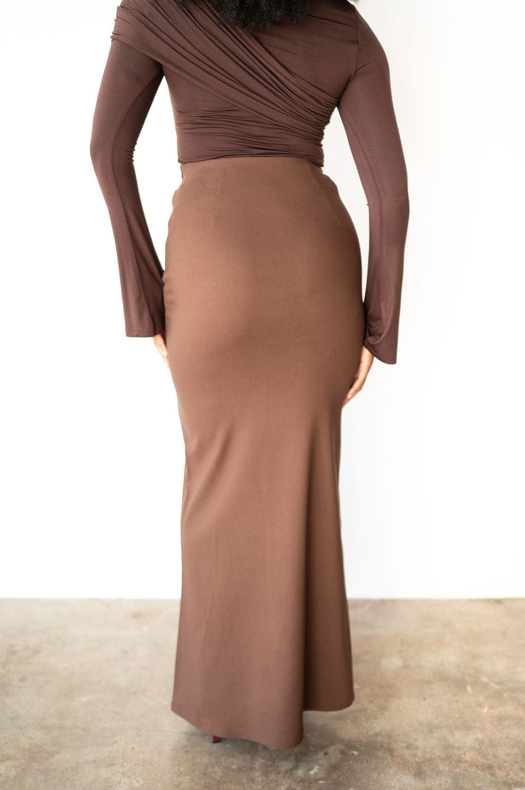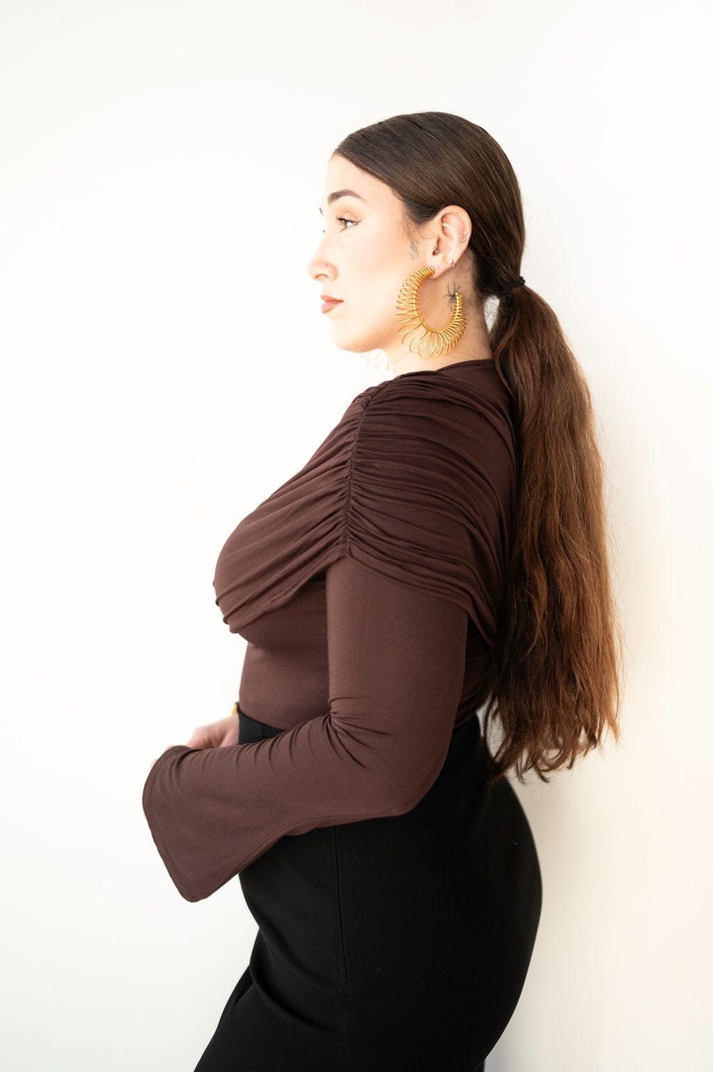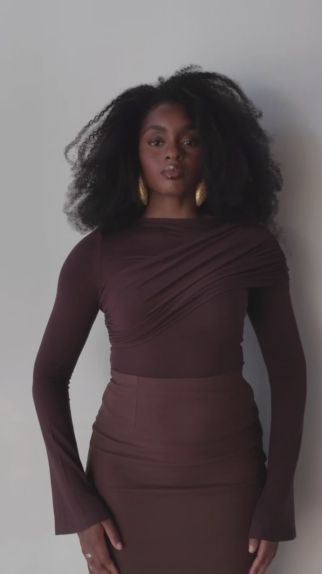 Tala Asymmetrical Long Sleeve Top in Mocha Brown