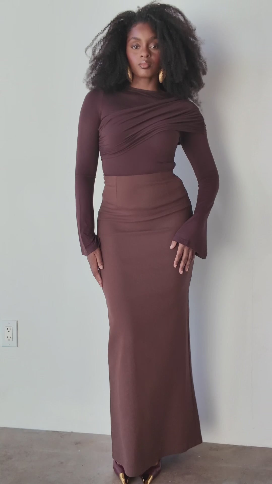 The Perfect No-Slit High Waist Maxi Skirt in Brown