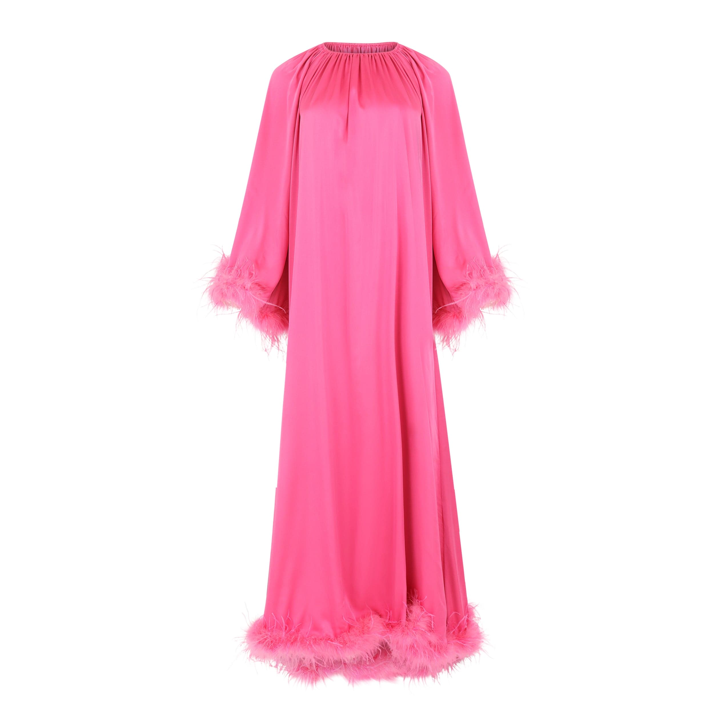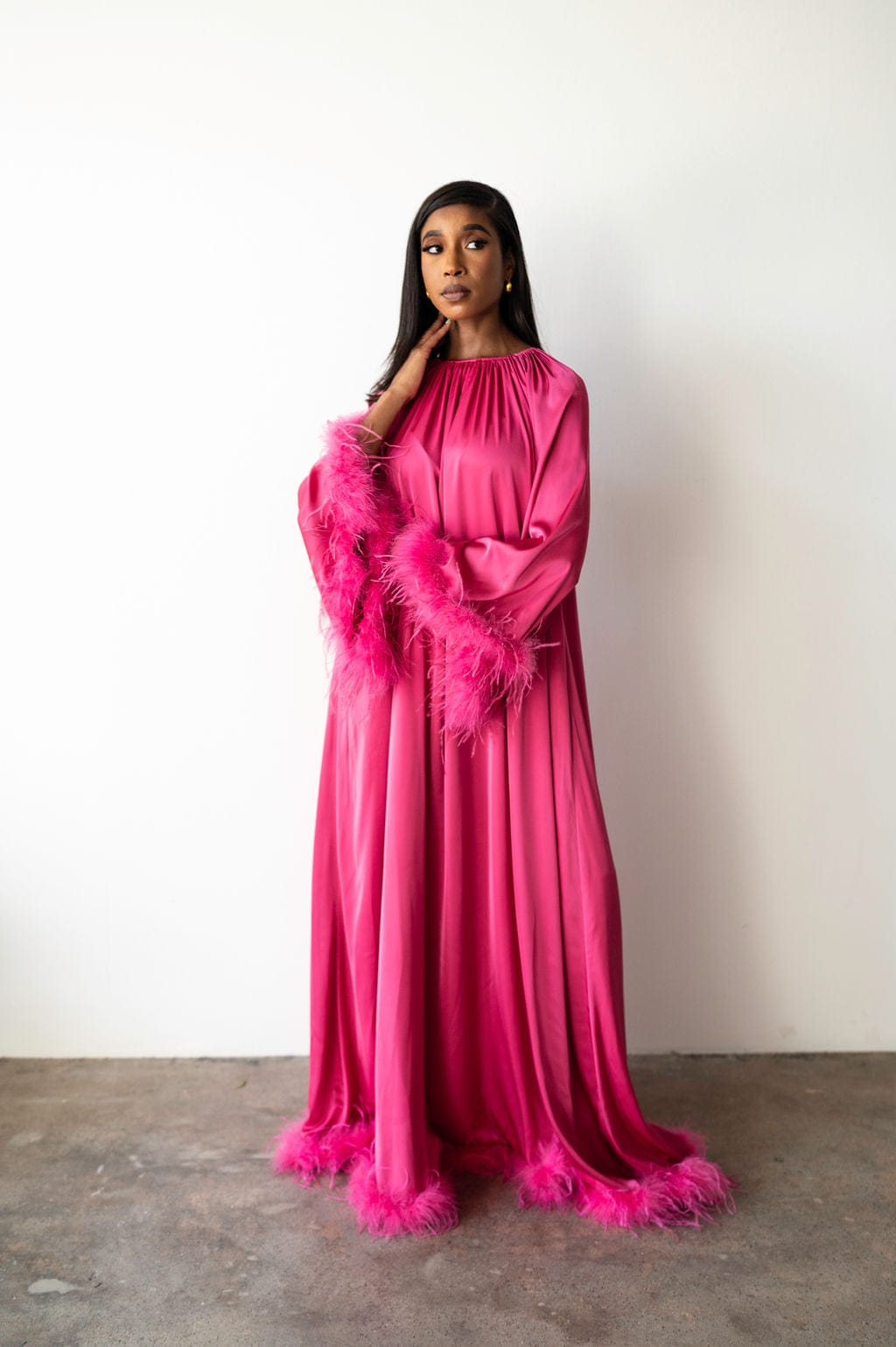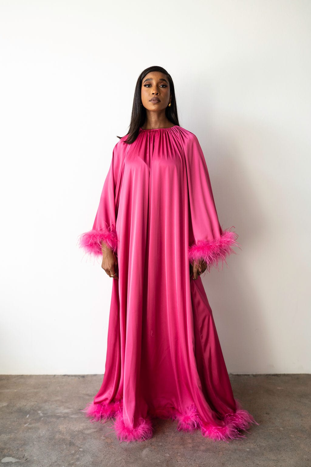 Layla Feather Sleeve Maxi Dress in Hot Pink