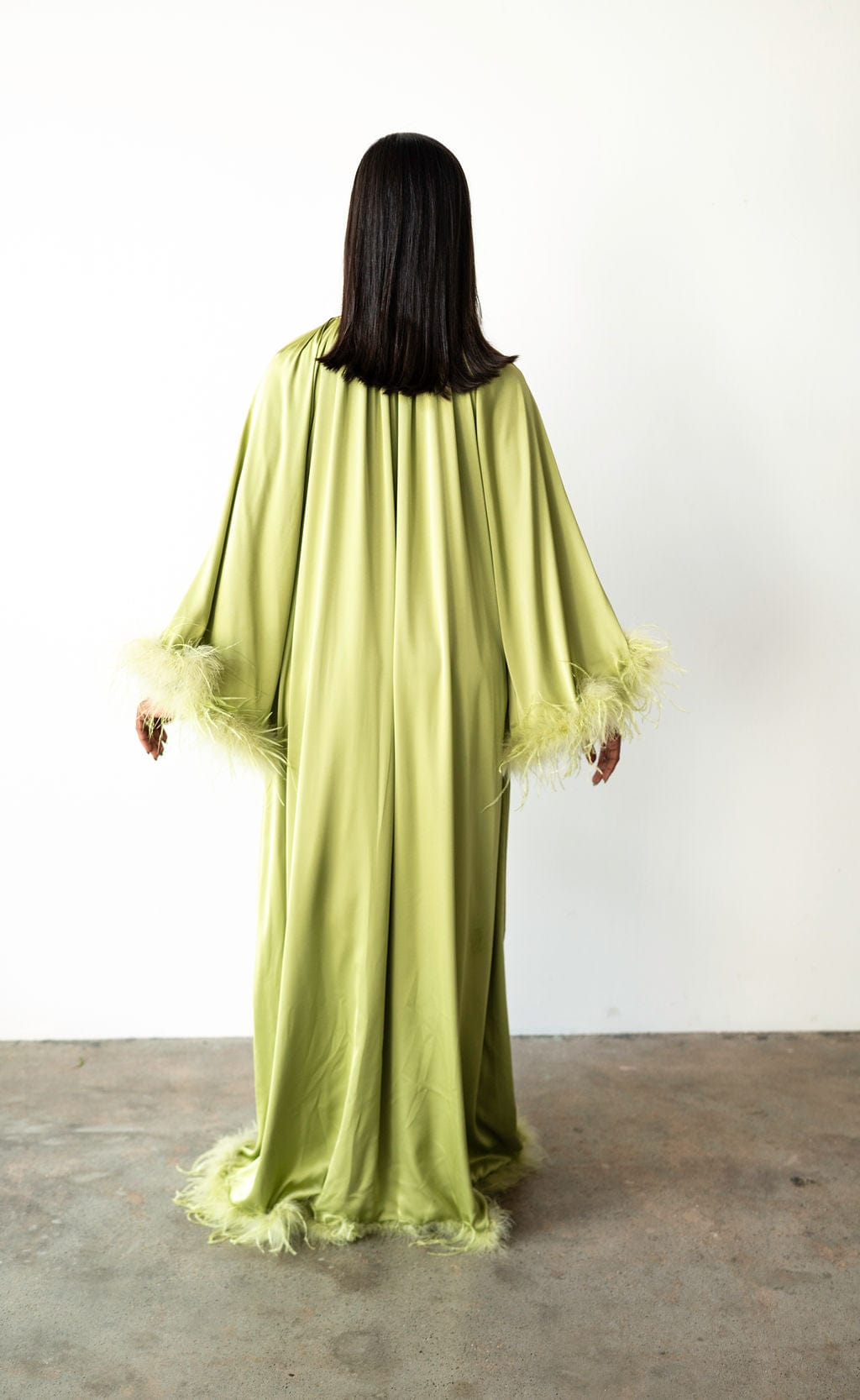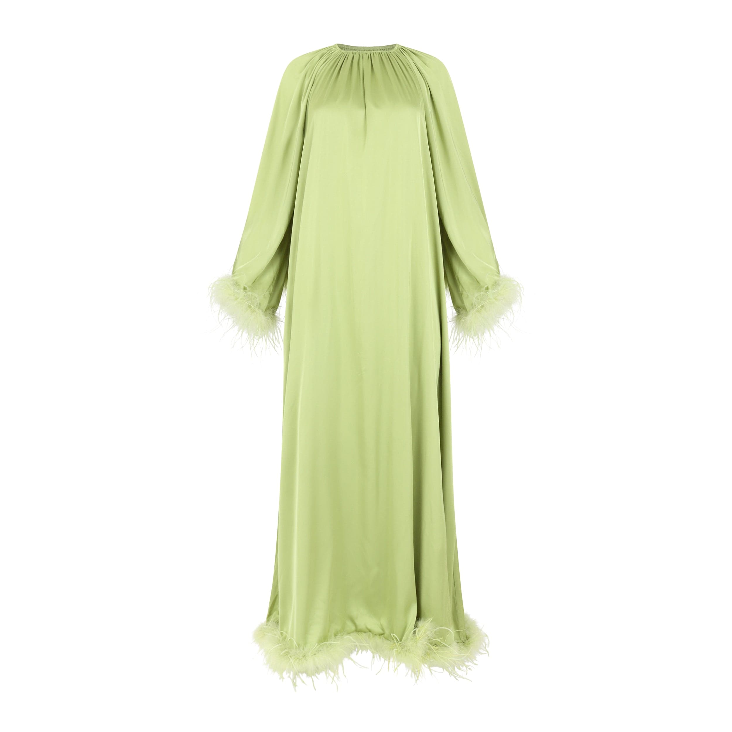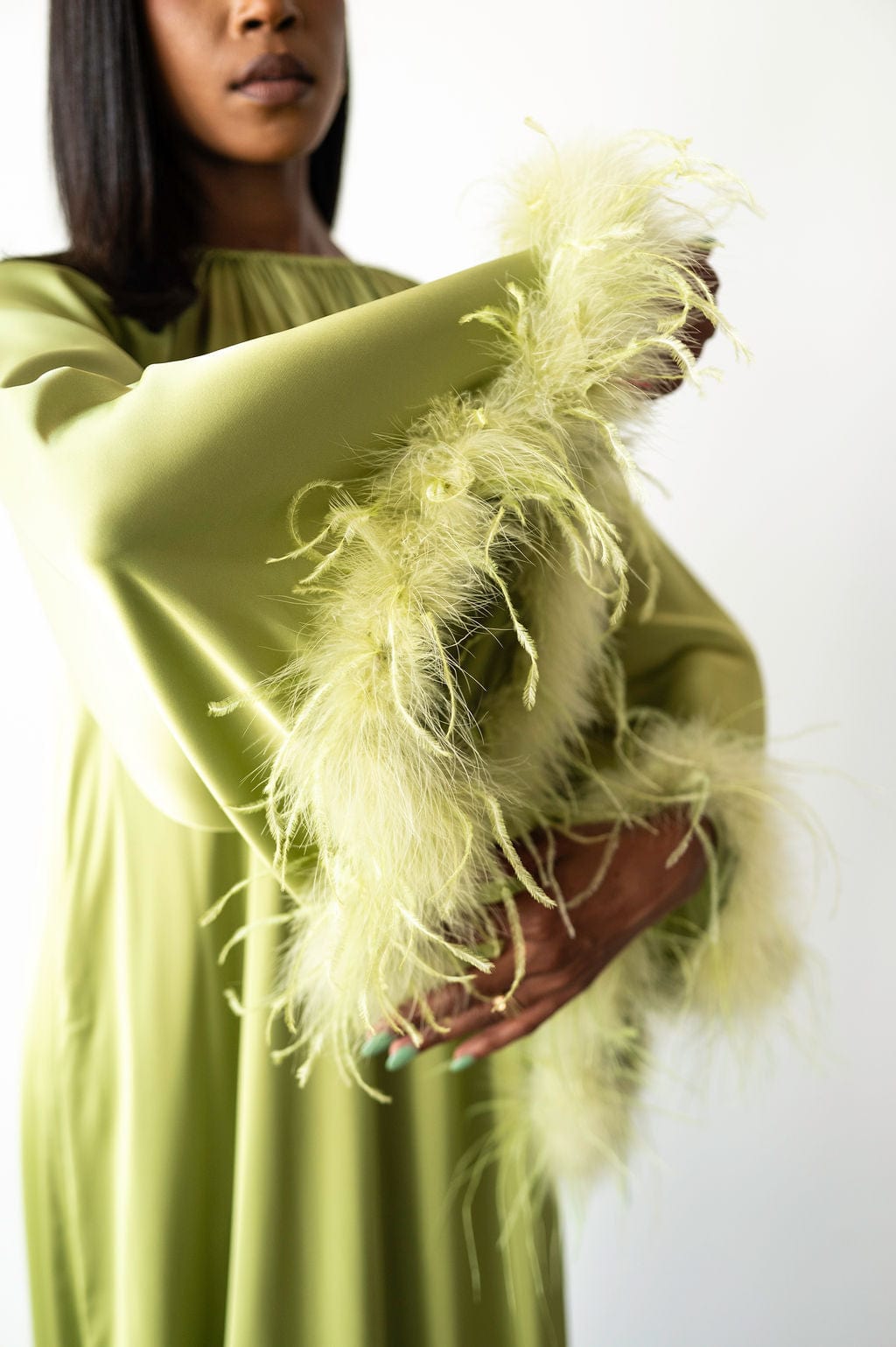 Layla Feather Sleeve Maxi Dress in Sage Apple Green