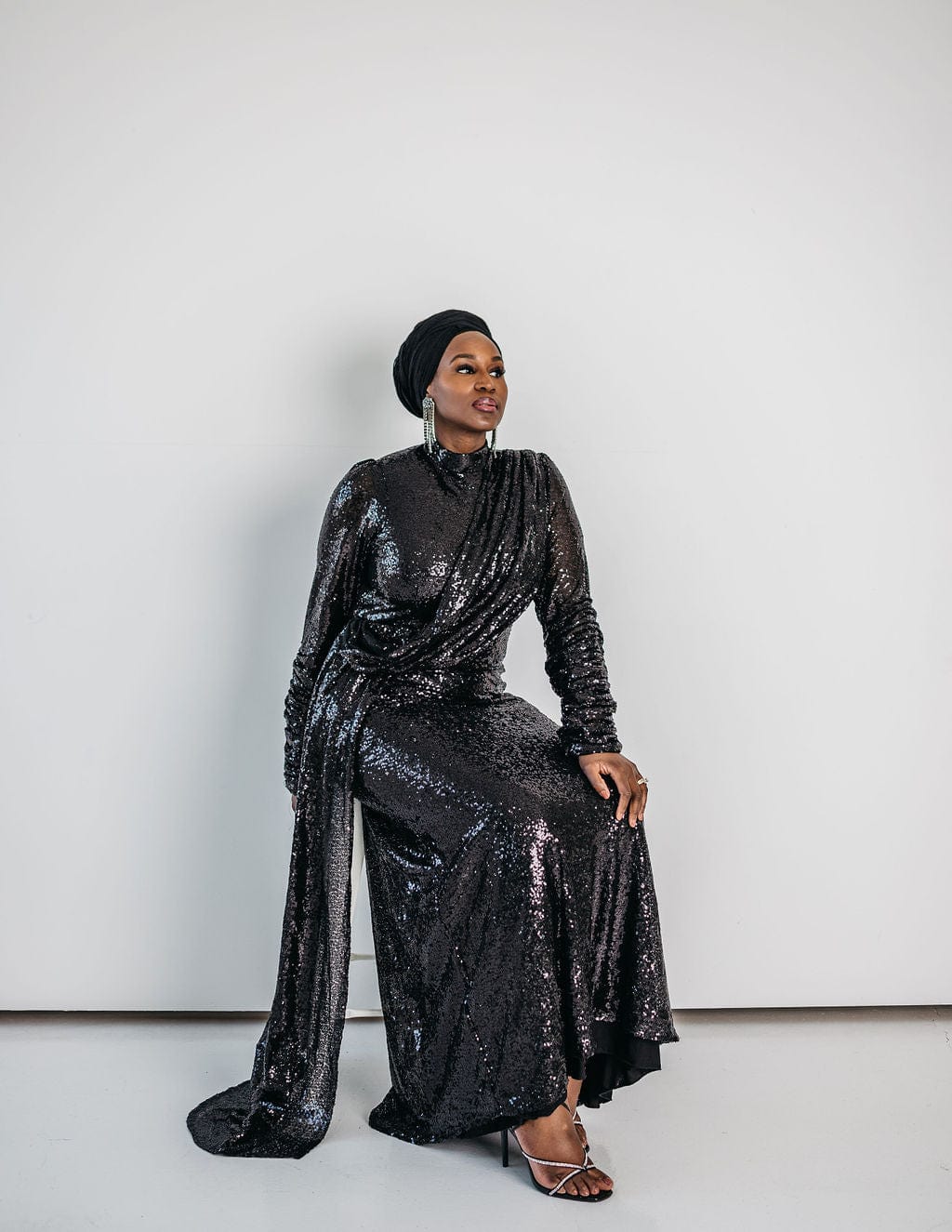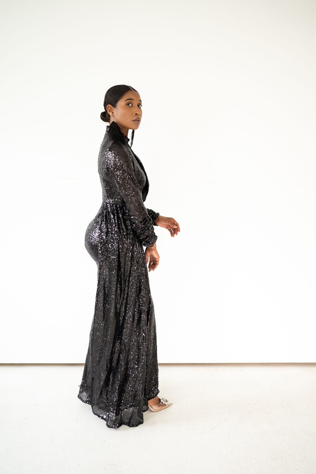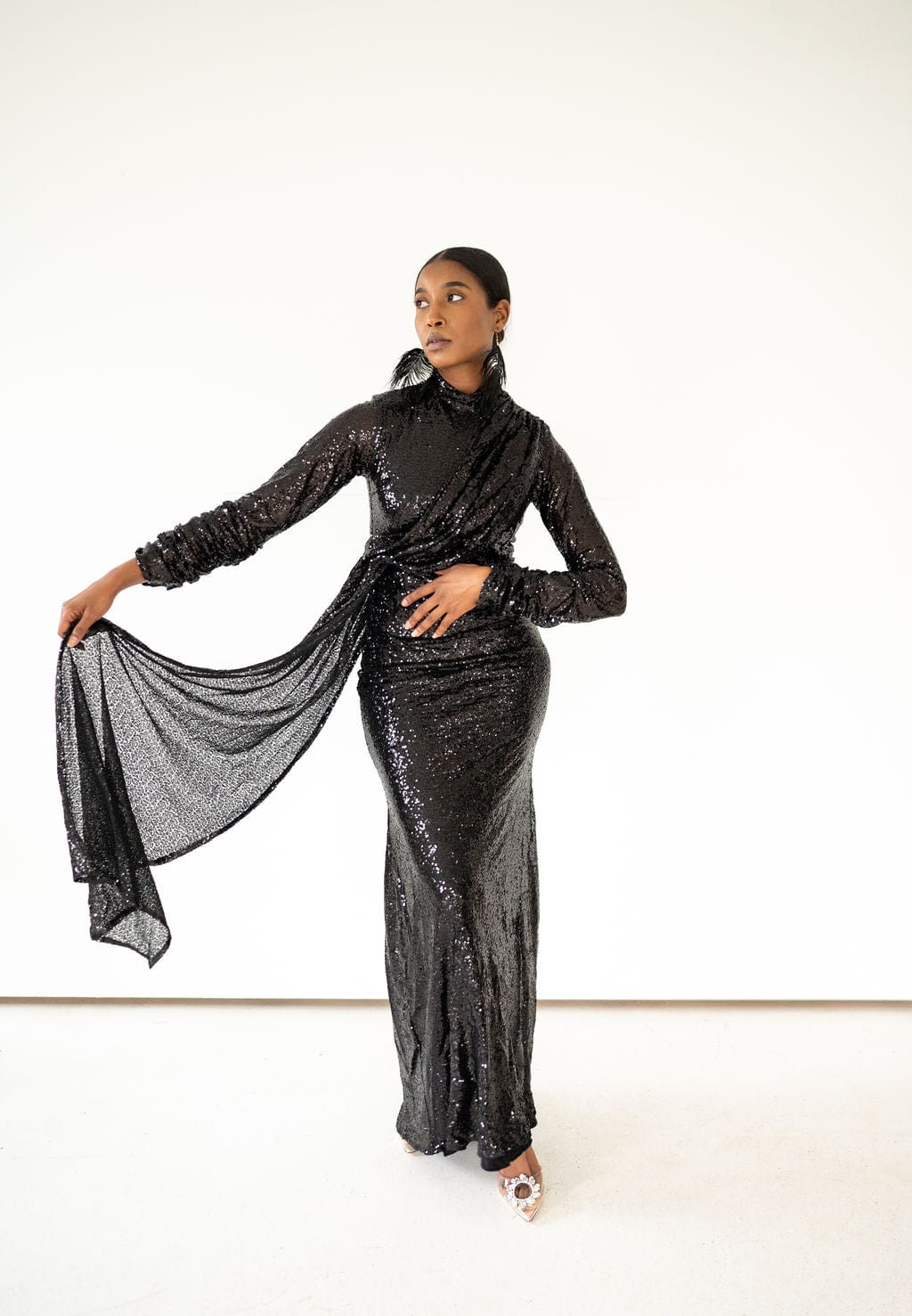 ZAINAB BELLO This dress is gorgeous and it’s a statement piece. The quality of the fabric is top notch. I love the draping detail so much, it’s gives it a very unique look. I can’t wait to wear this dress to a fancy dinner, weddings or any classic event. I can’t wait to turn heads...lol