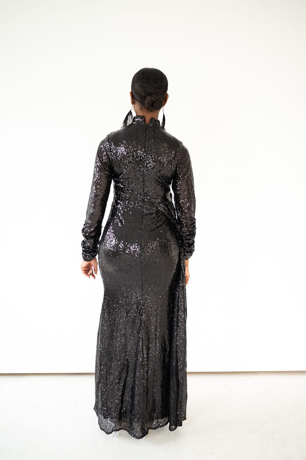 - Black sequin material with stretch, consider sizing down if desire a tighter fit.