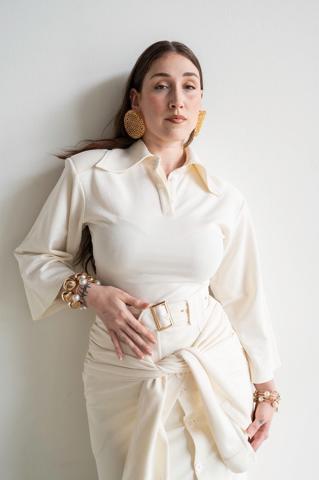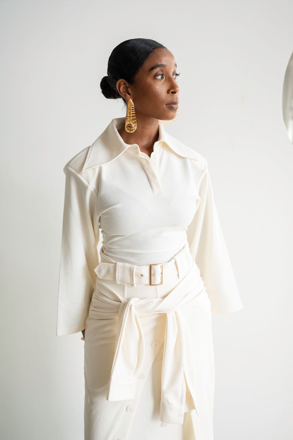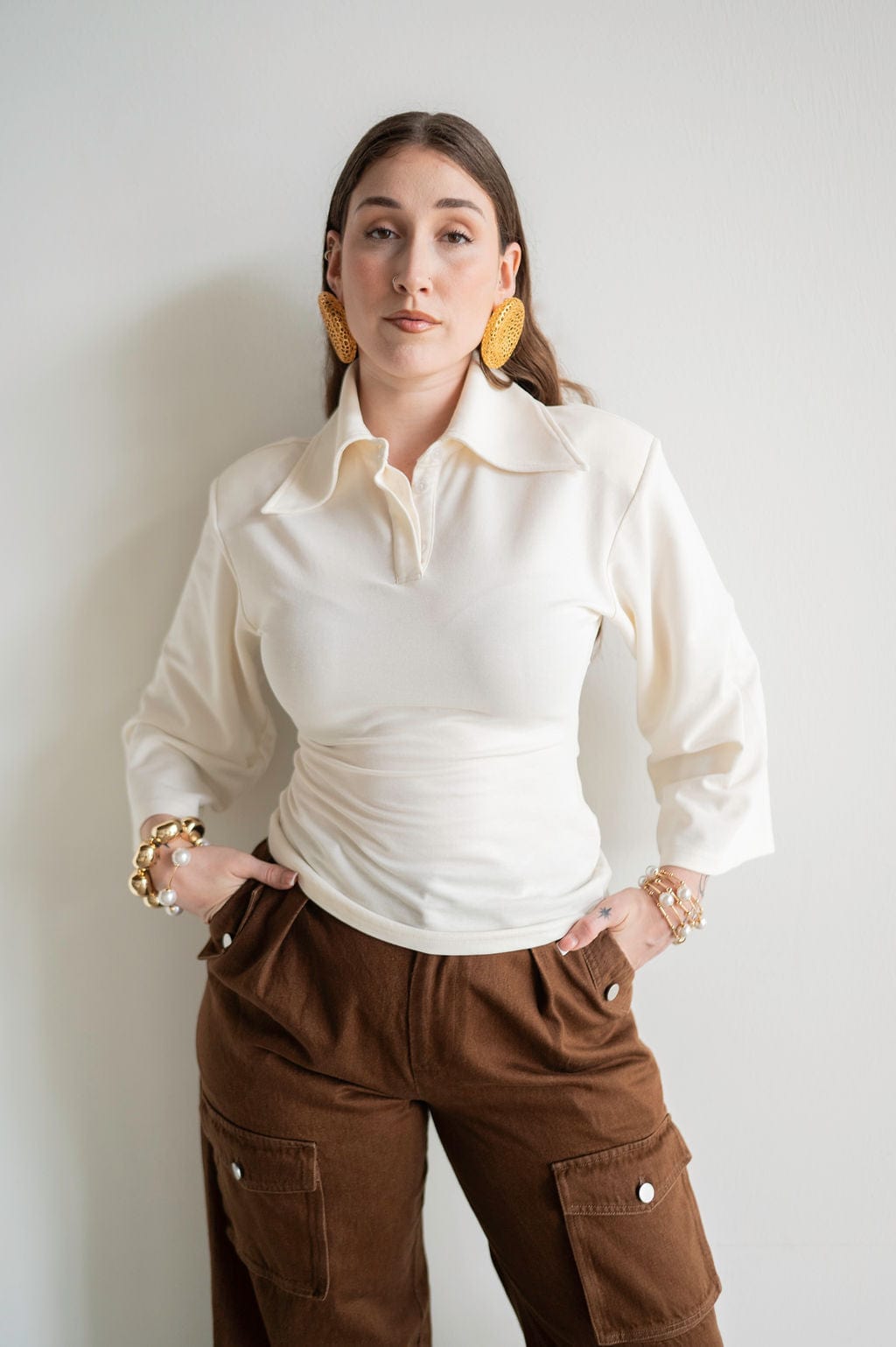Inayah Exaggerated Collar Polo Shirt Ivory