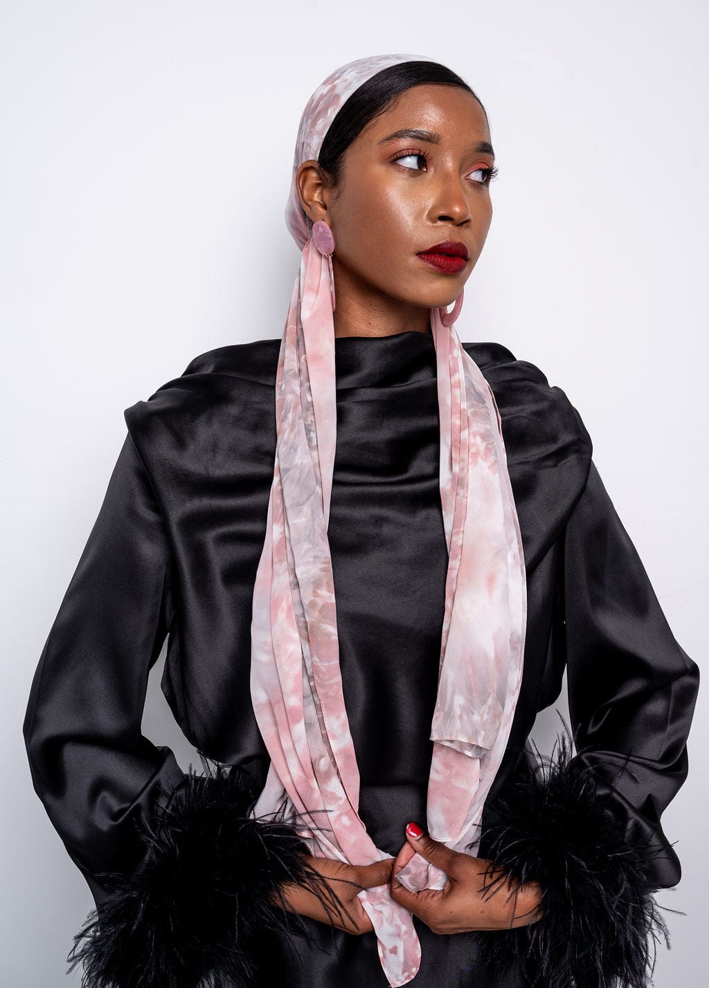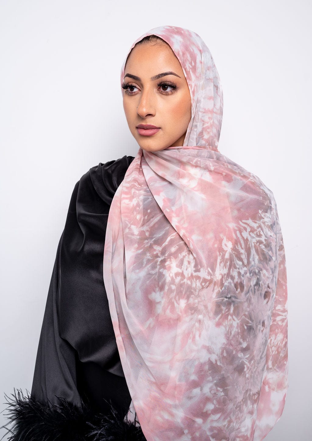 Blush, Grey and White Tie-Dye Chiffon Scarf