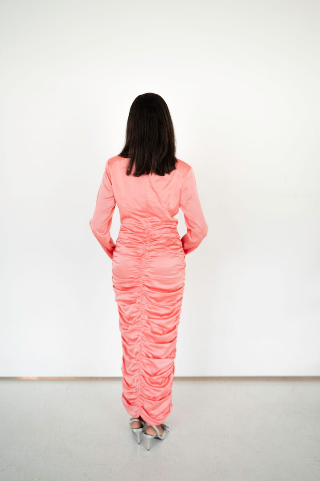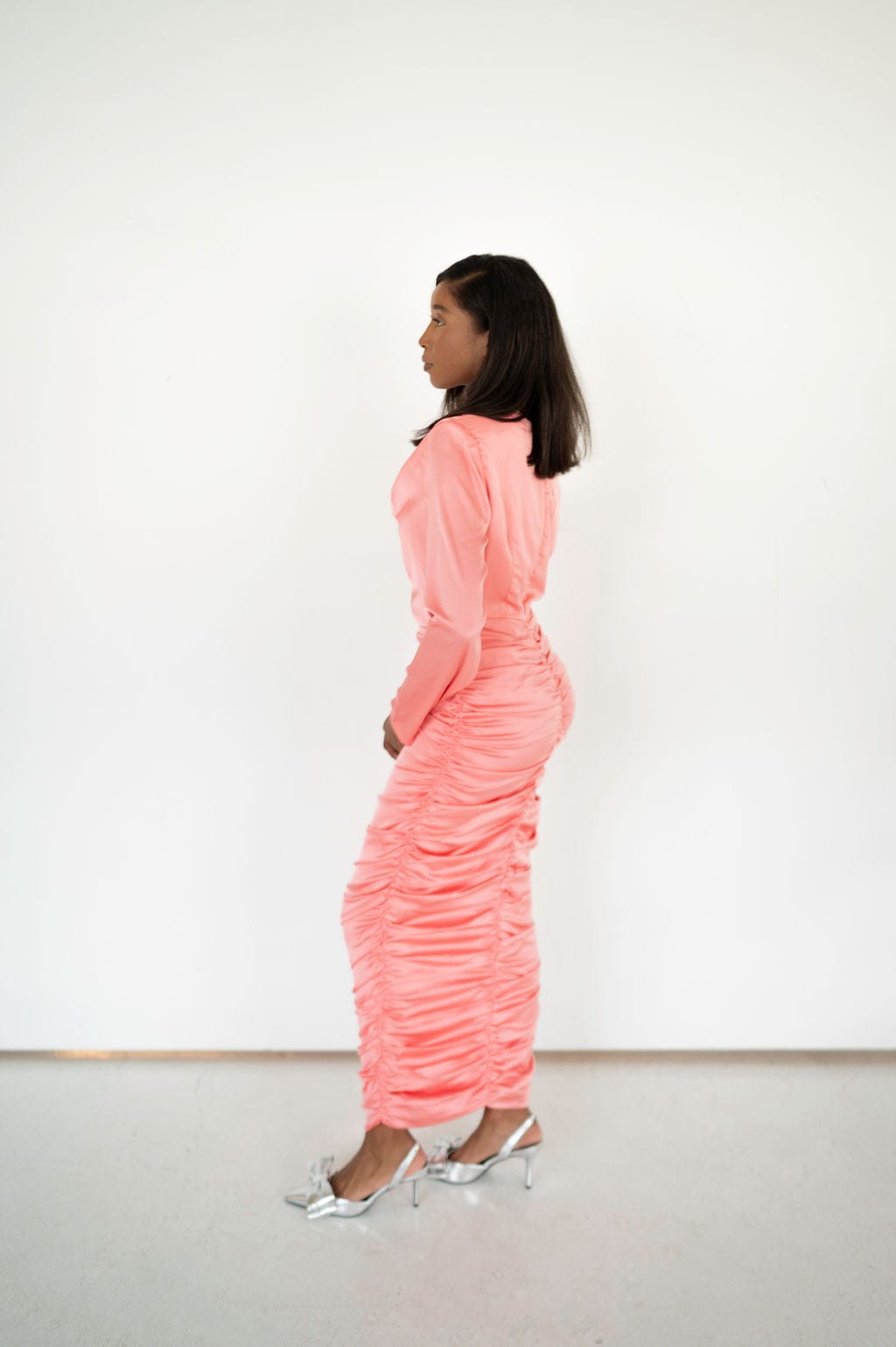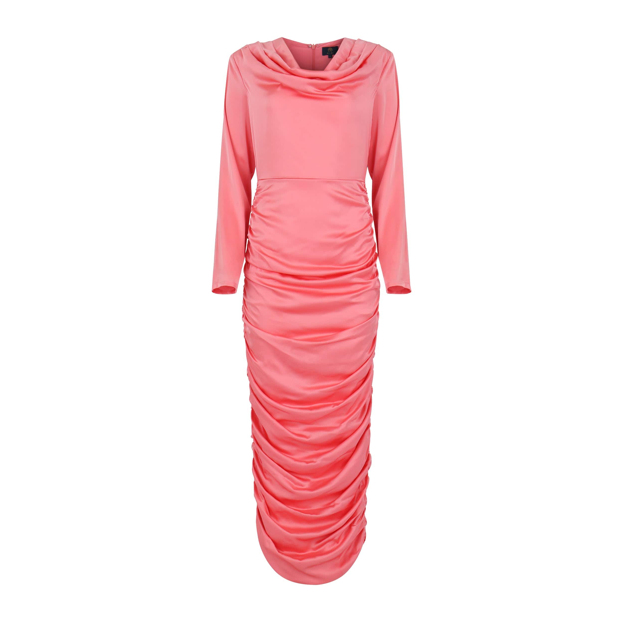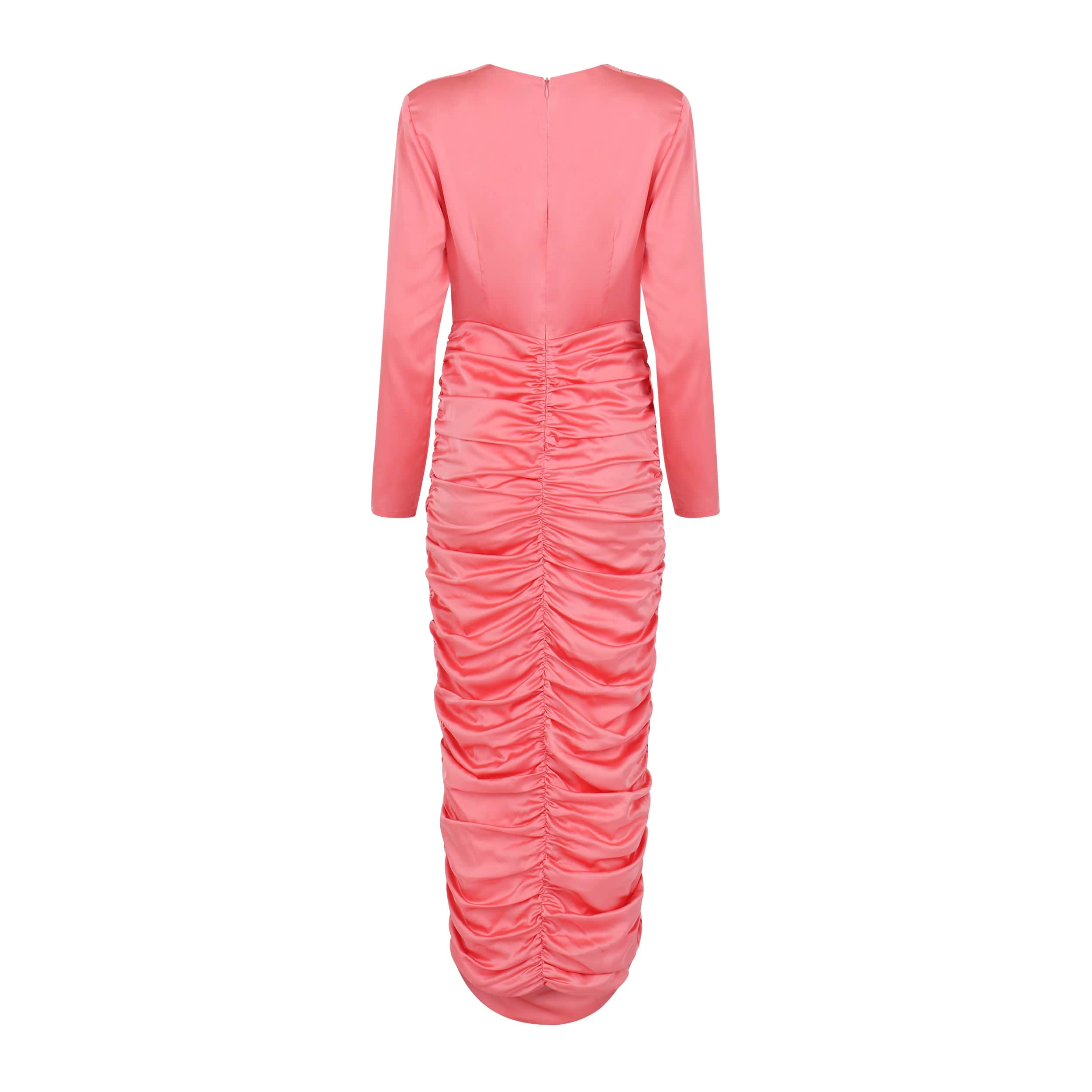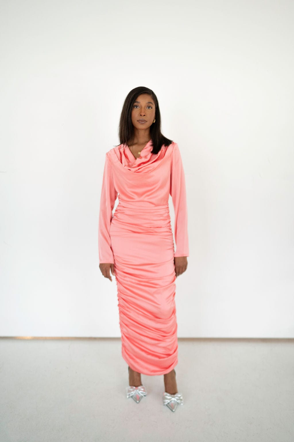 Ife Long Sleeve Draped Maxi Dress- Pink