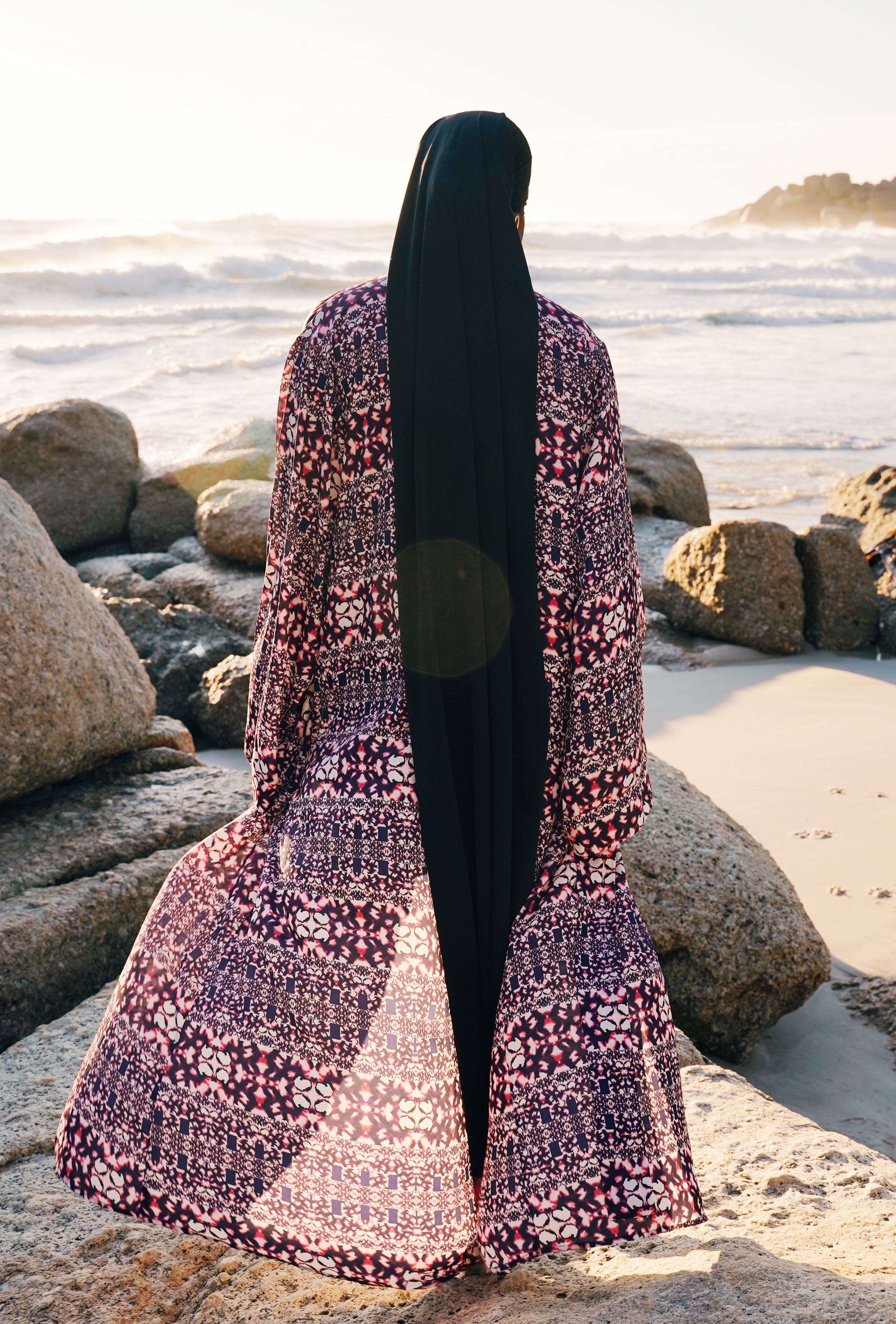 This kimono is giving all types of vibes. I like that I can wear it anywhere like the beach, Jummah, Dinner, brunch. The sleeve is a very unique one and gives the modest look every muslimah want.