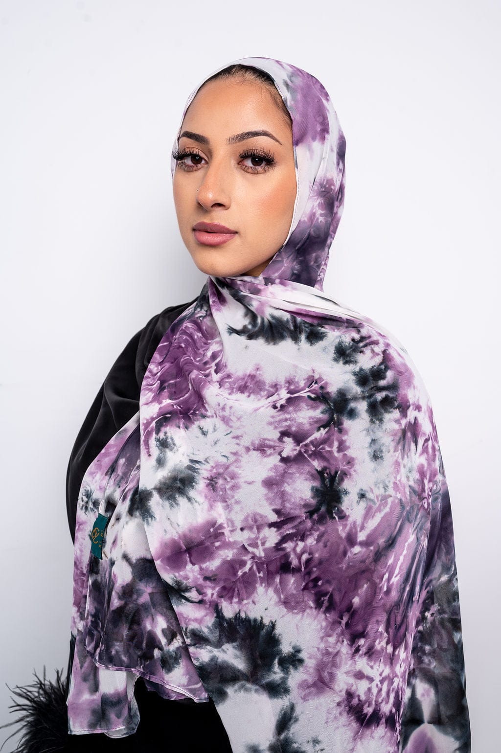 Black, Purple and White Tie-Dye Chiffon Scarf