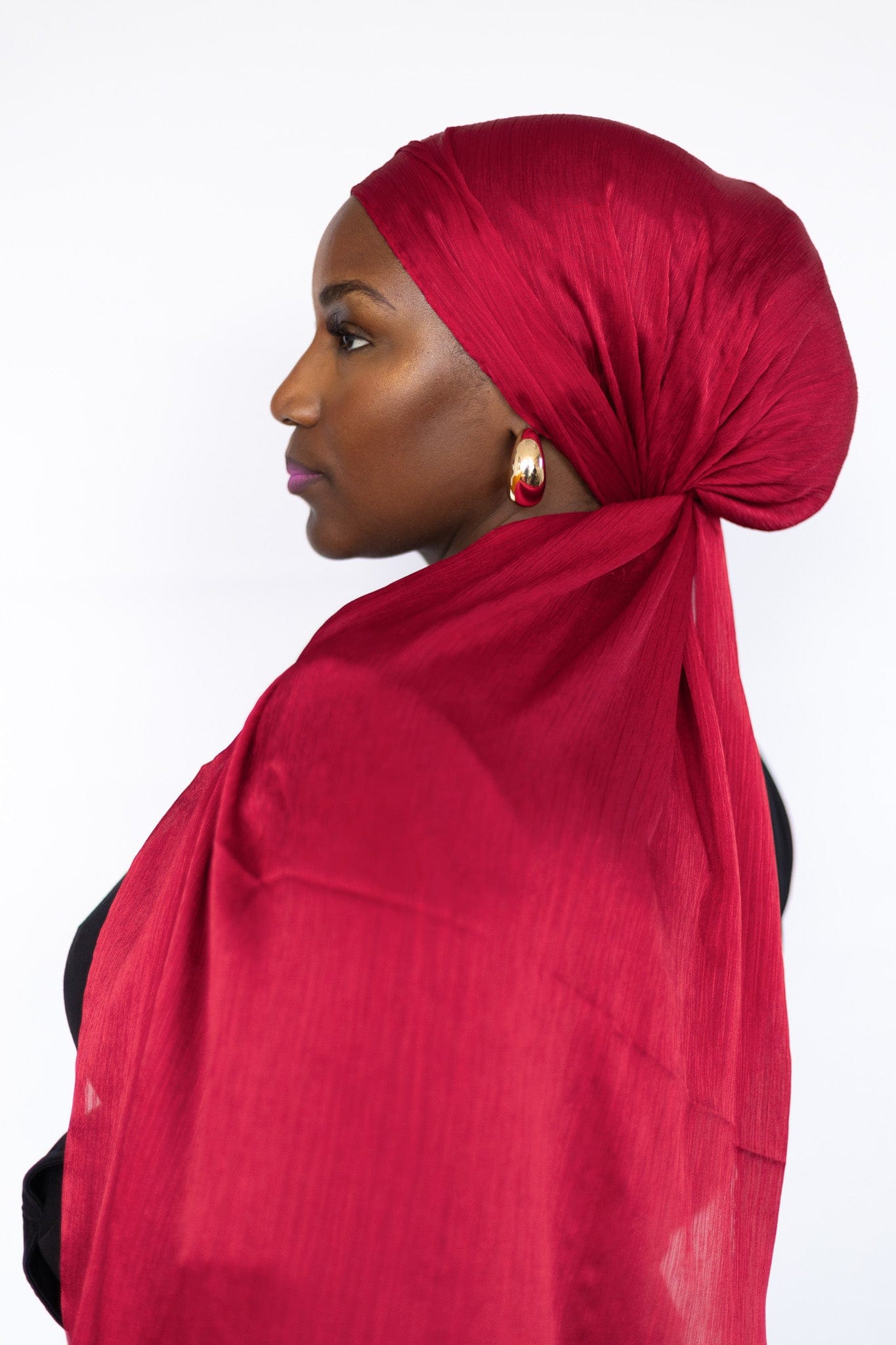 Elevate your style with our crinkle satin scarf. This scarf adds a touch of elegance to any outfit, making it perfect for special occasions. Embrace the unique and special with our one-of-a-kind scarf.