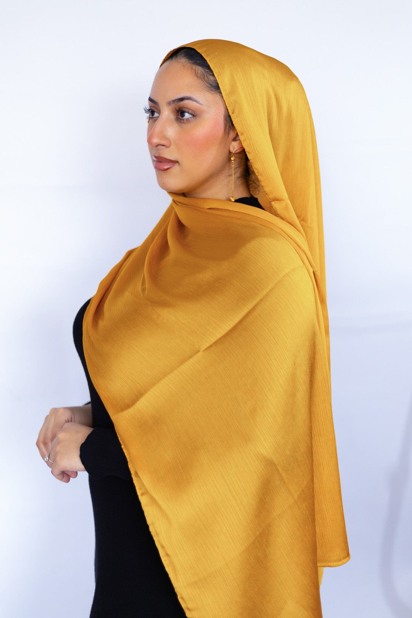Elevate your style with our crinkle satin scarf. This scarf adds a touch of elegance to any outfit, making it perfect for special occasions. Embrace the unique and special with our one-of-a-kind scarf.