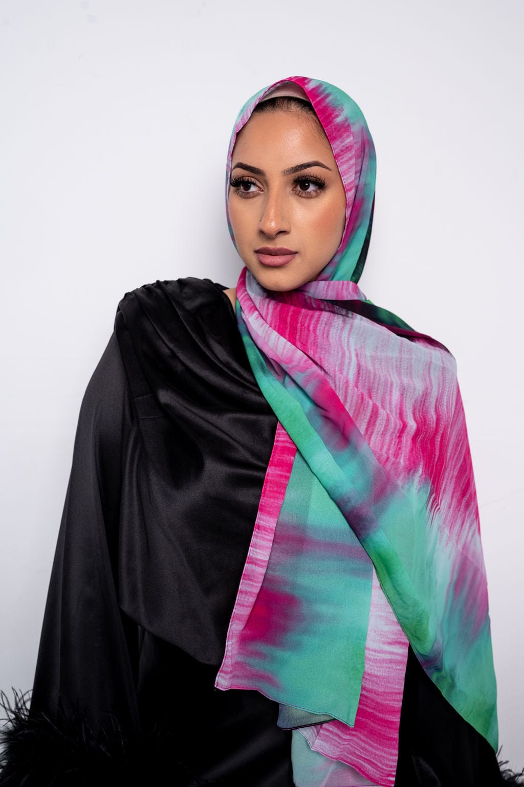 The Nawra printed chiffon scarf is the perfect addition to complete your entire Narwa look. It's large size means you can rock it many ways! You can tie it around your head as a full hijab, tie it to the back, or as a turban!