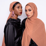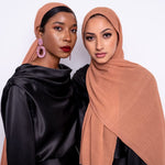 Our plisse chiffon scarves are lightweight and are the perfect addition to any outfit. You can tie it around your head as a full hijab, tie it to the back, or as a turban! You can even rock it around your neck. The styling opportunities are endless.