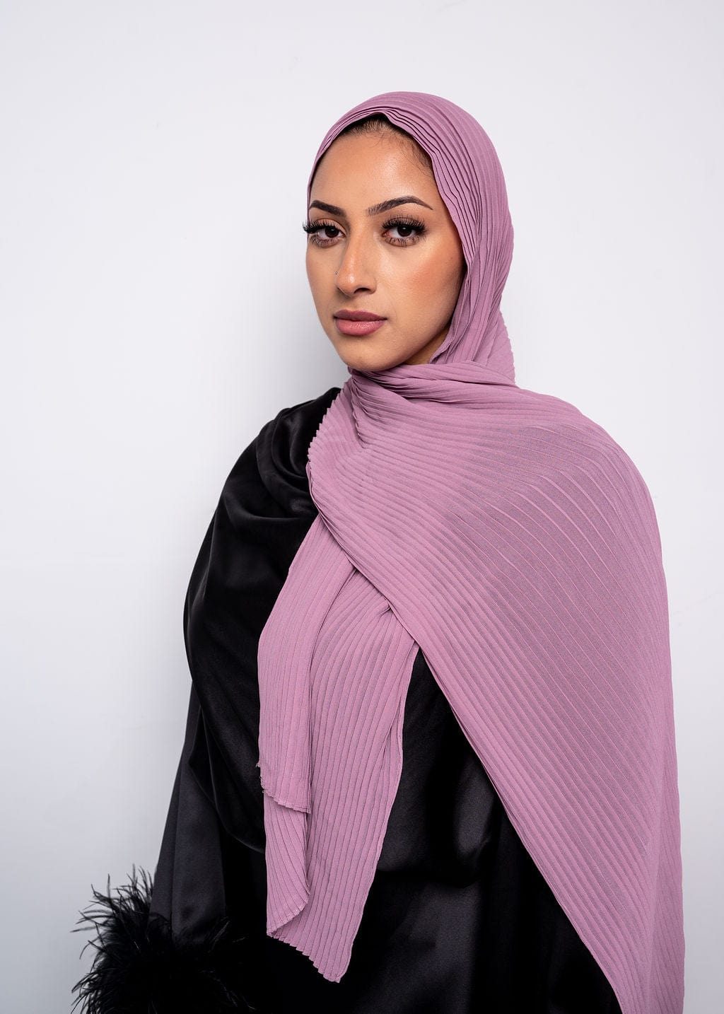 Our pleated chiffon scarves are lightweight and are the perfect addition to any outfit. You can tie it around your head as a full hijab, tie it to the back, or as a turban! You can even rock it around your neck. The styling opportunities are endless.
