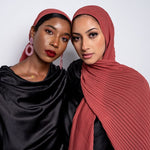 Our pleated chiffon scarves are lightweight and are the perfect addition to any outfit. You can tie it around your head as a full hijab, tie it to the back, or as a turban! You can even rock it around your neck. The styling opportunities are endless.
