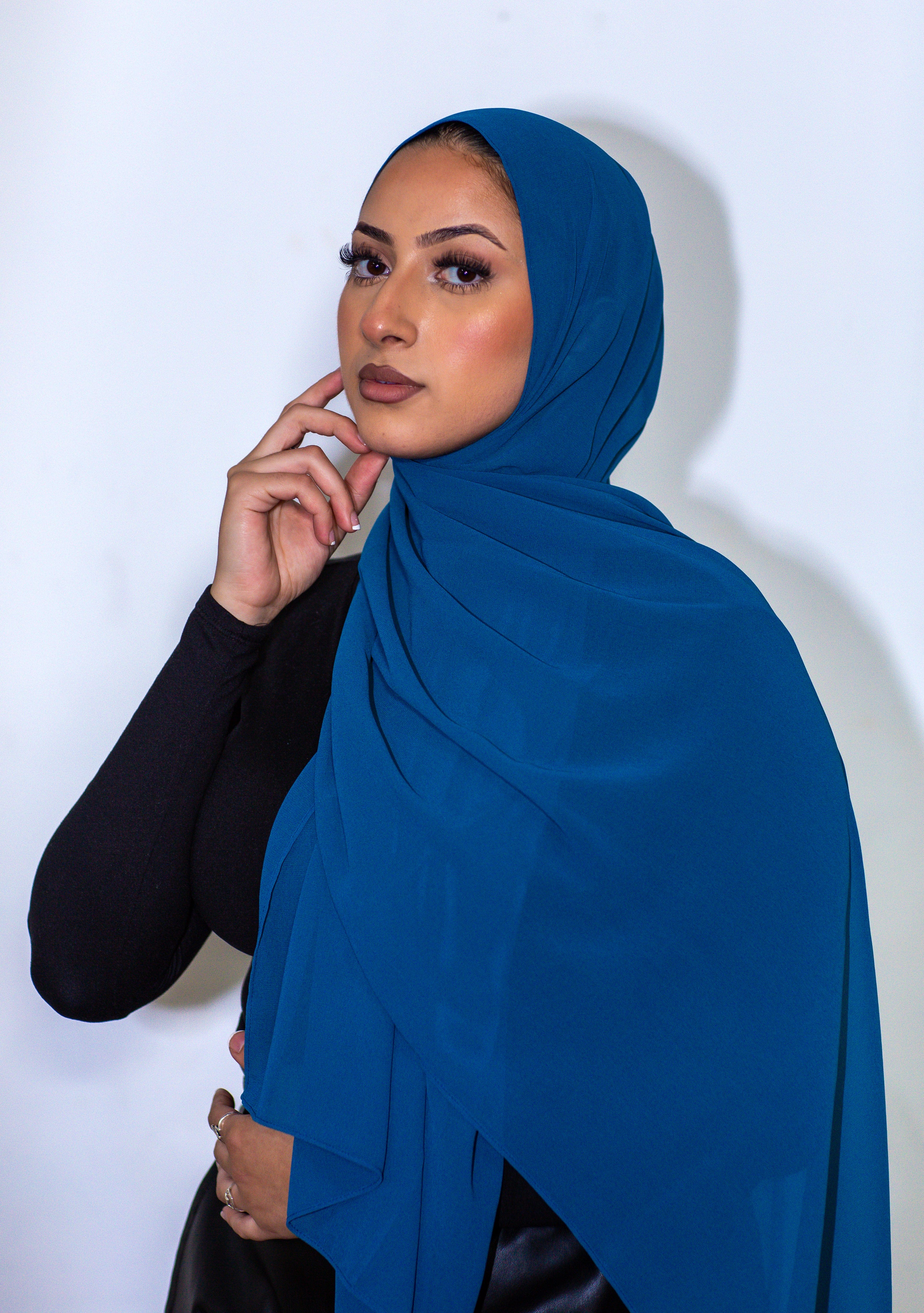 Our chiffon scarfs are incredibly high quality and feel like butter on your skin. This scarf can be worn tied to the back, as a turban, or as a traditional hijab. The possibilities are endless with RI MI. The measurements are 180 x 70 cm.