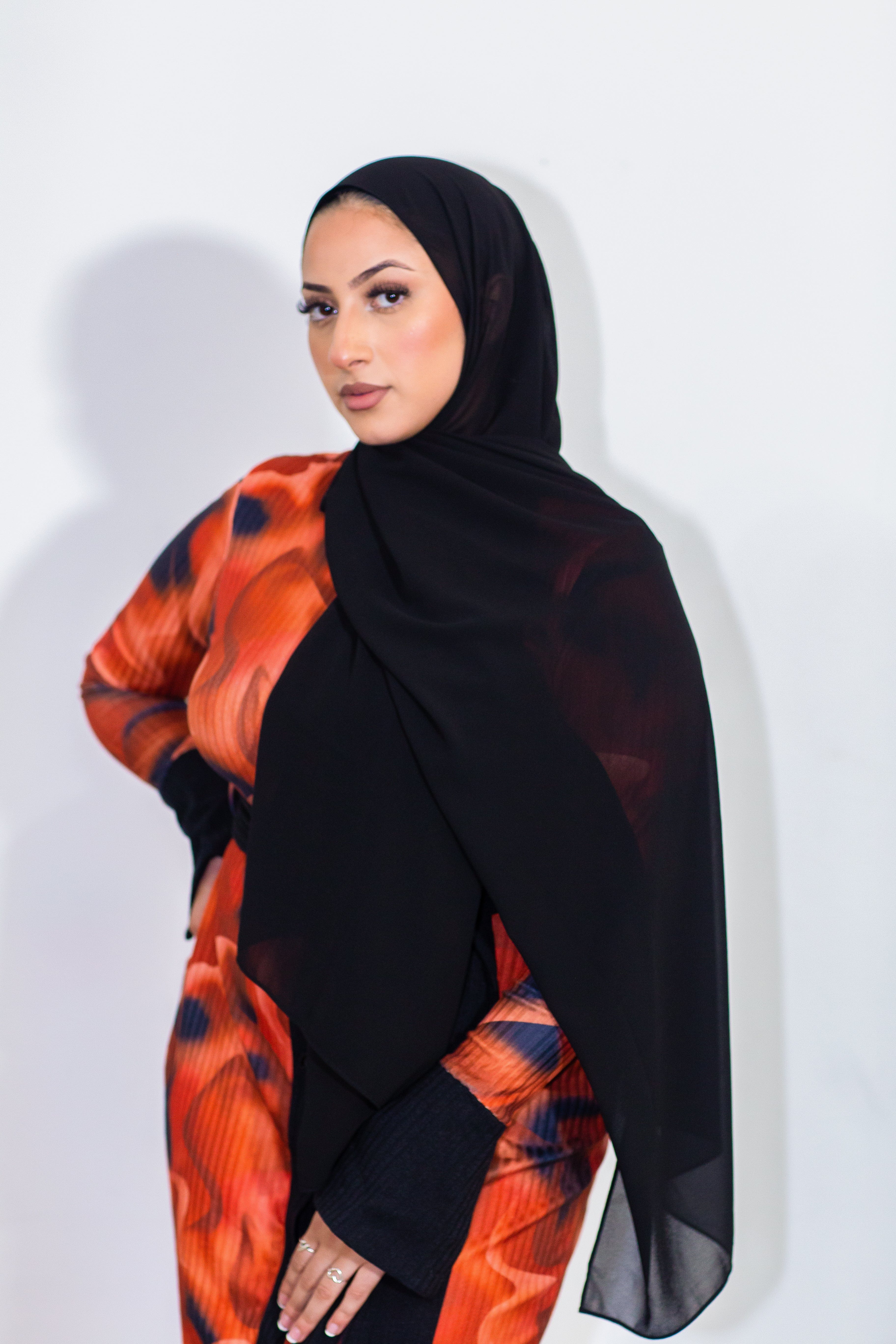 Our chiffon scarfs are incredibly high quality and feel like butter on your skin. This scarf can be worn tied to the back, as a turban, or as a traditional hijab. The possibilities are endless with RI MI. The measurements are 180 x 70 cm.
