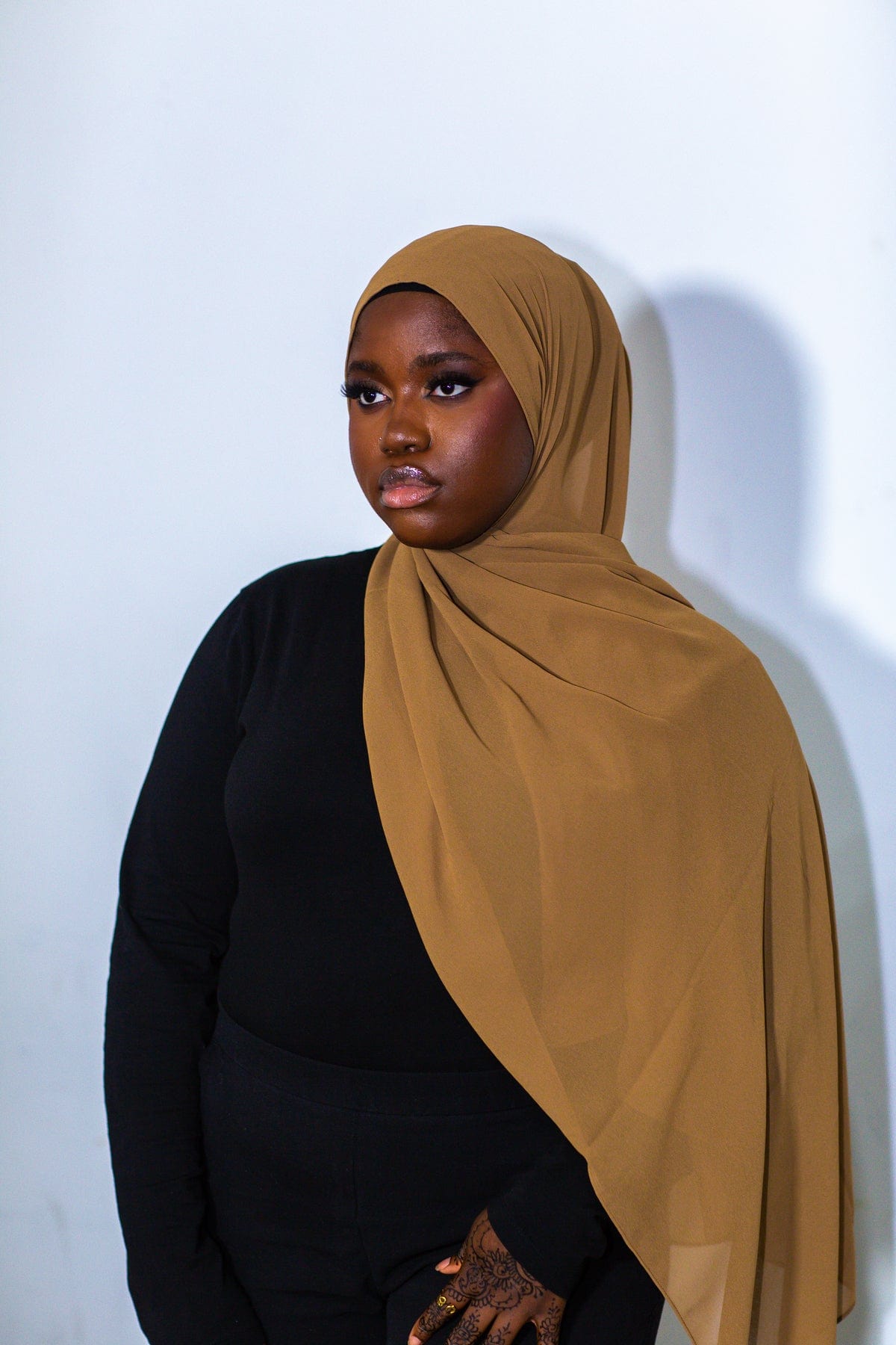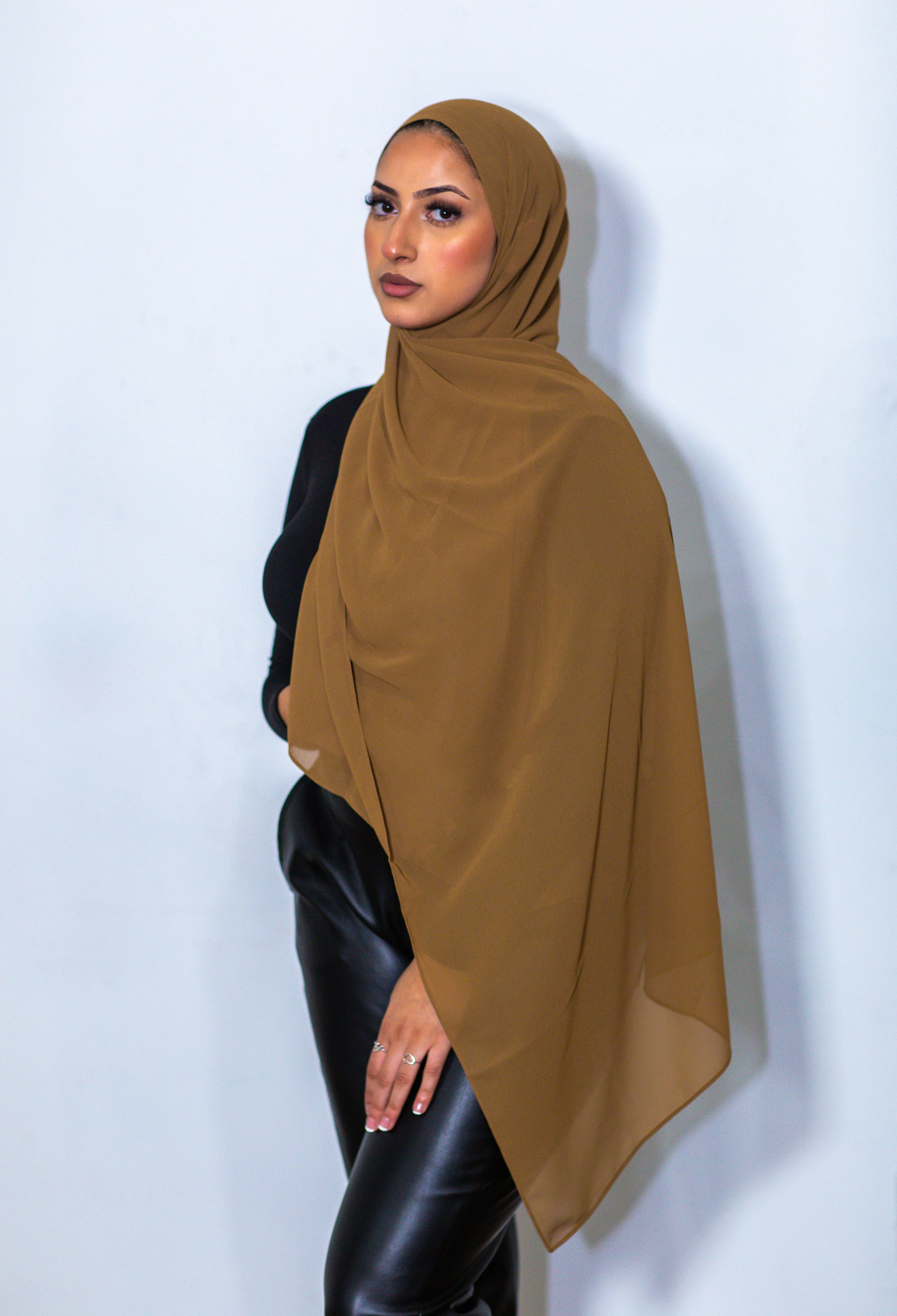 Our chiffon scarfs are incredibly high quality and feel like butter on your skin. This scarf can be worn tied to the back, as a turban, or as a traditional hijab. The possibilities are endless with RI MI. The measurements are 180 x 70 cm.