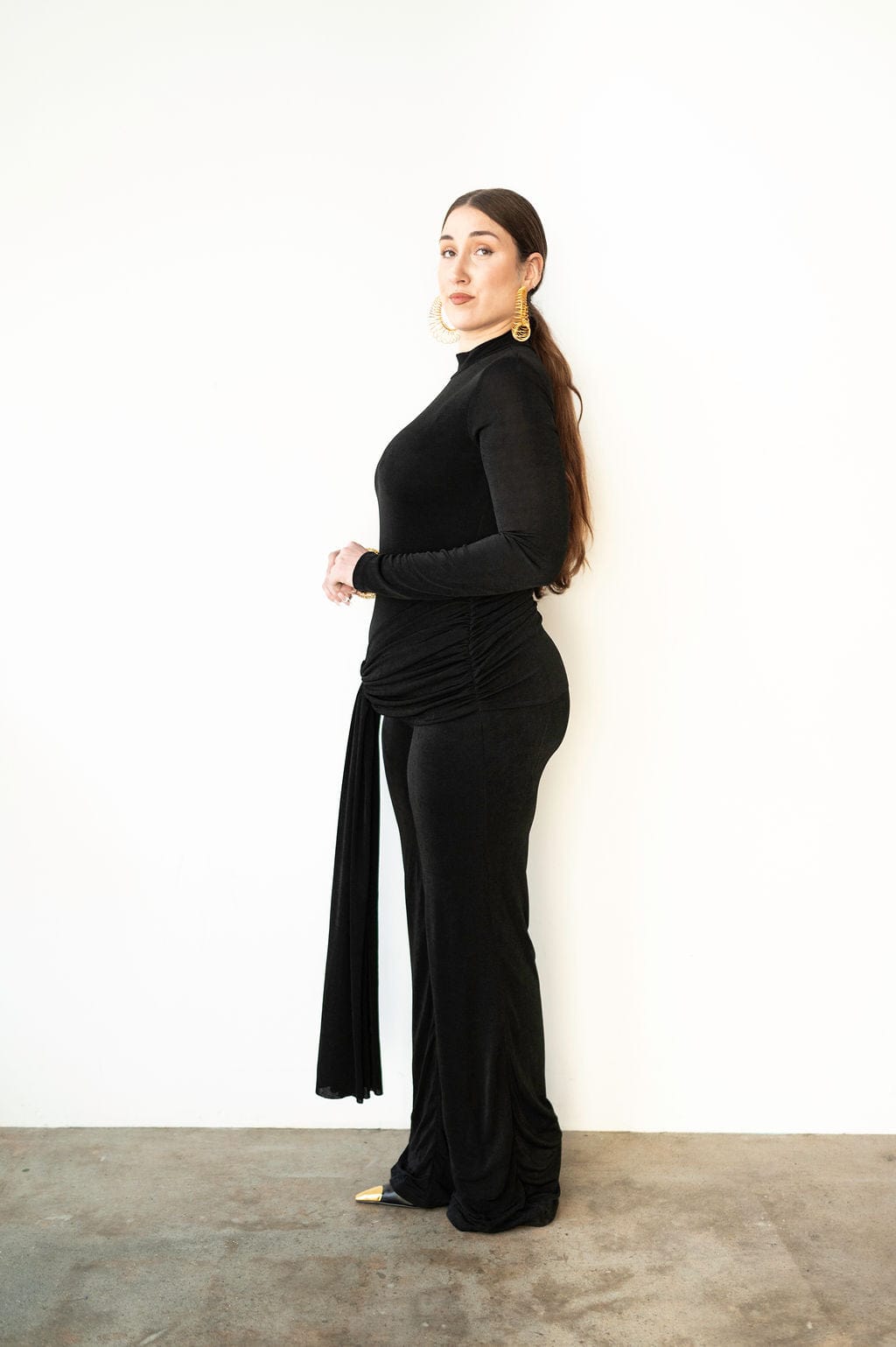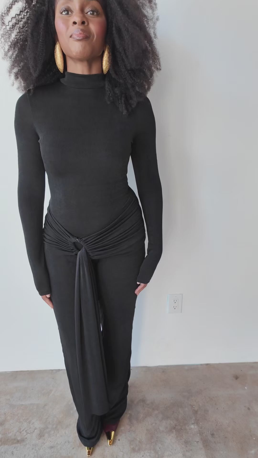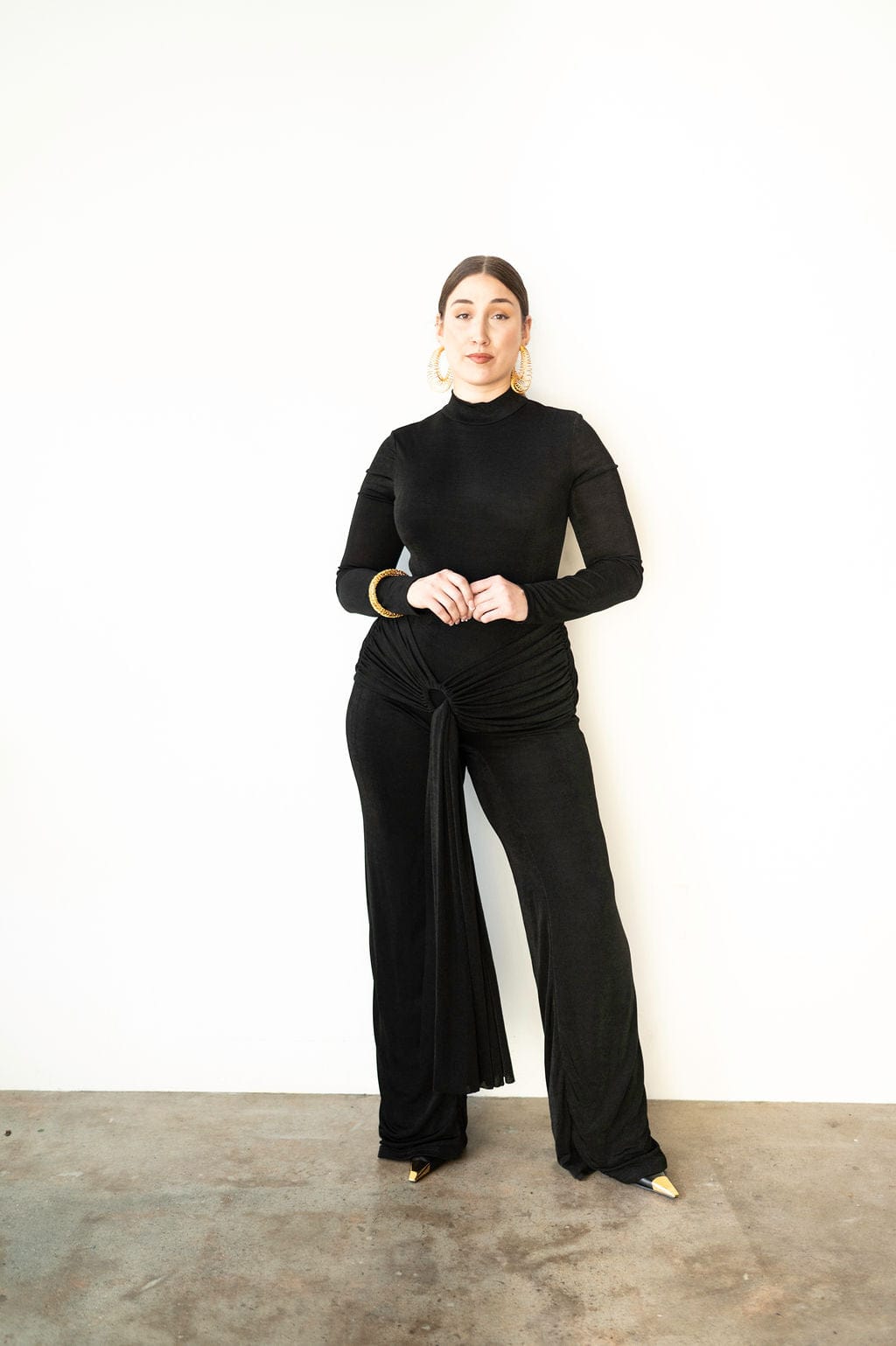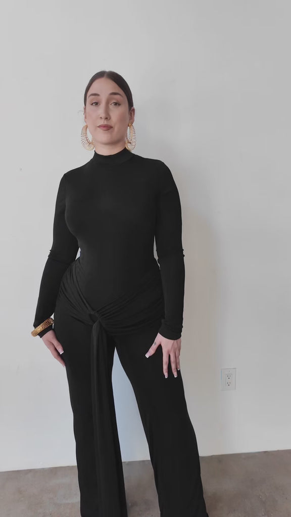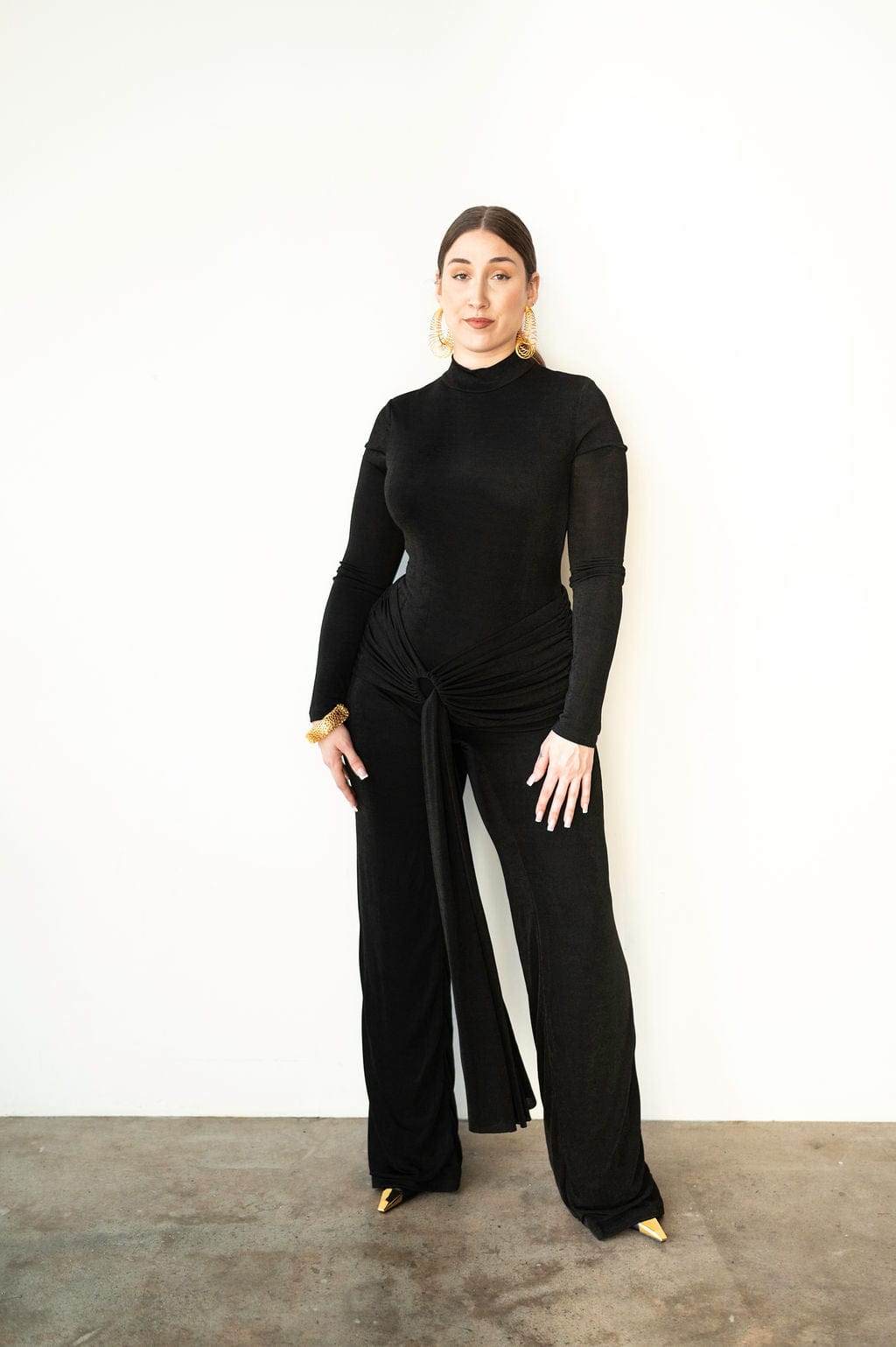 Kiki Long Sleeve Draped Jumpsuit in Black
