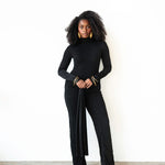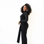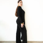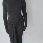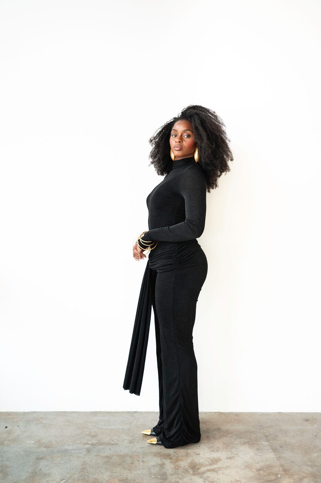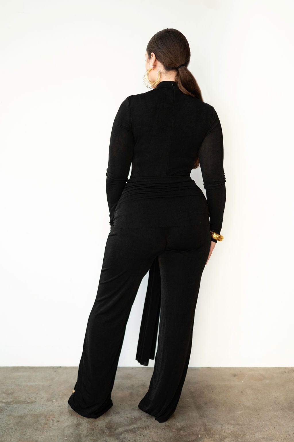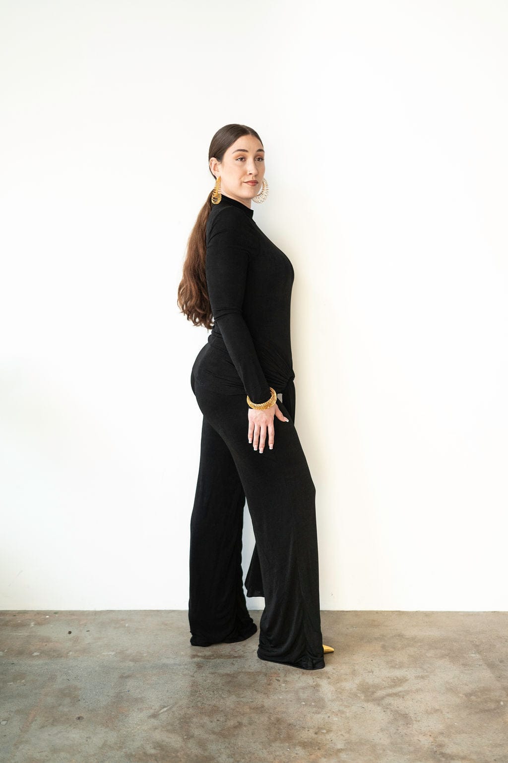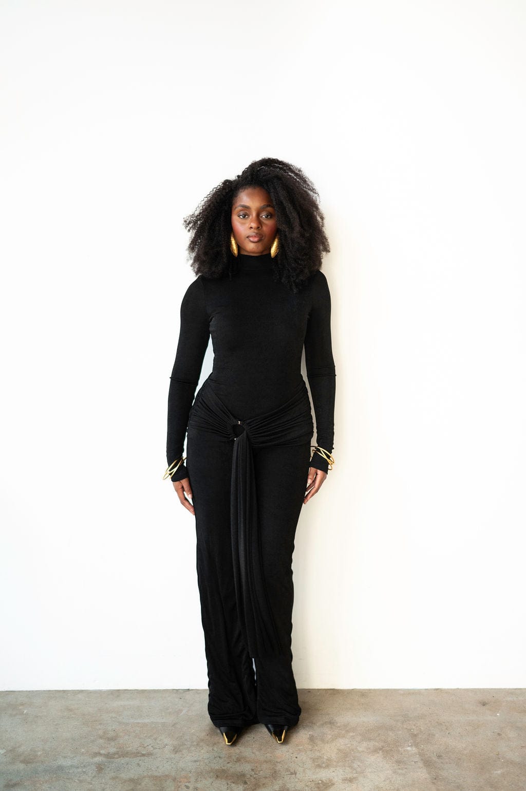 Kiki Long Sleeve Draped Jumpsuit in Black