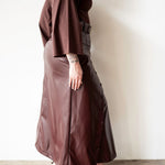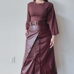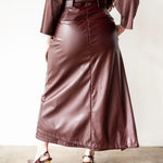 Lai High Waist Asymmetrical Button Skirt in Vegan Leather Mahogany