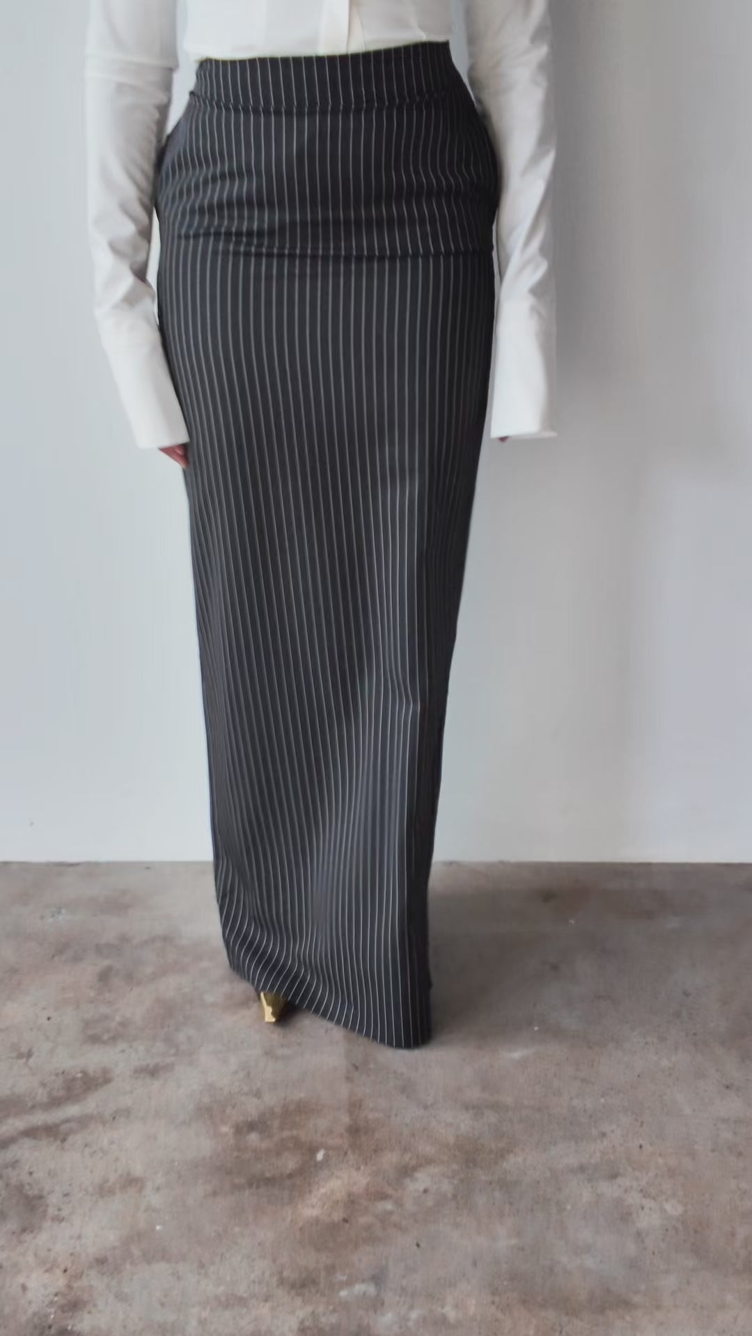 Ade Long Maxi Skirt in Black Pinstripe