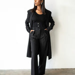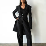 Make a bold statement with the Amaya Power Suit Long Blazer in Black! This chic blazer not only offers a sleek and professional look, but also brings in the waist for a flattering silhouette. Elevate your style and confidence with this must-have piece!
