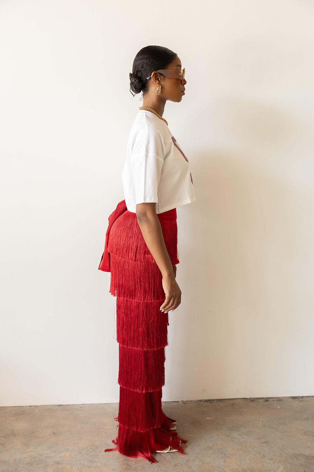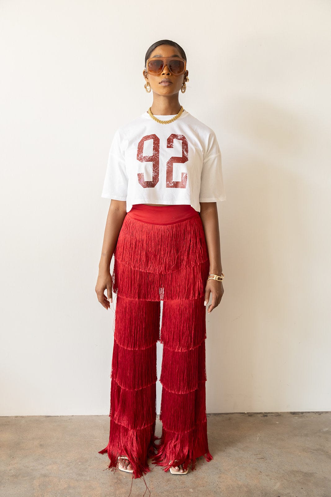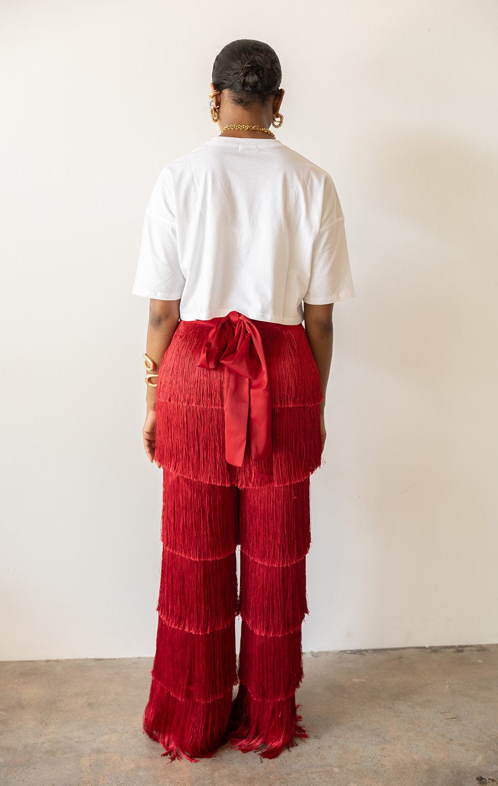 Hiza in Arabic means shake, because what else are you supposed to do in these stunning, jaw dropping fringe pants. These pants are the statement piece that your closet has been begging for. Get ready for all the compliments you will receive the moment you walk out the door wearing these.