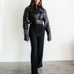 Introducing the Jade 2-in-1 Convertible Vegan Leather Jacket! Perfect for any stylista, this jacket offers a versatile and effortless transition from a full-length jacket to a cropped one with just a zip. Elevate your wardrobe and save closet space with this must-have staple!