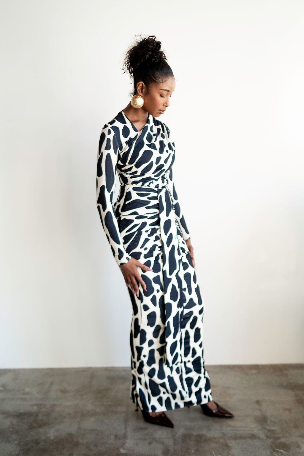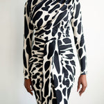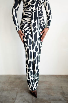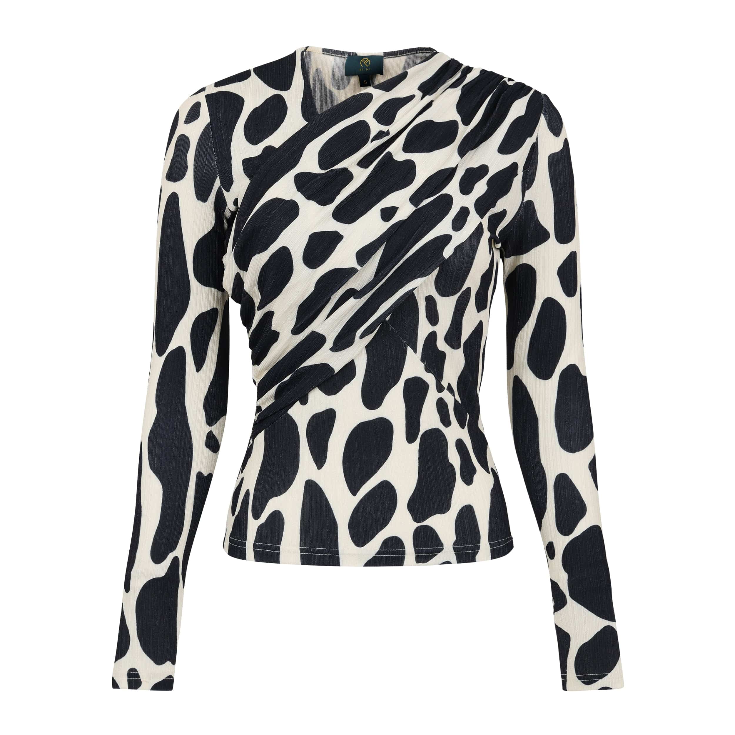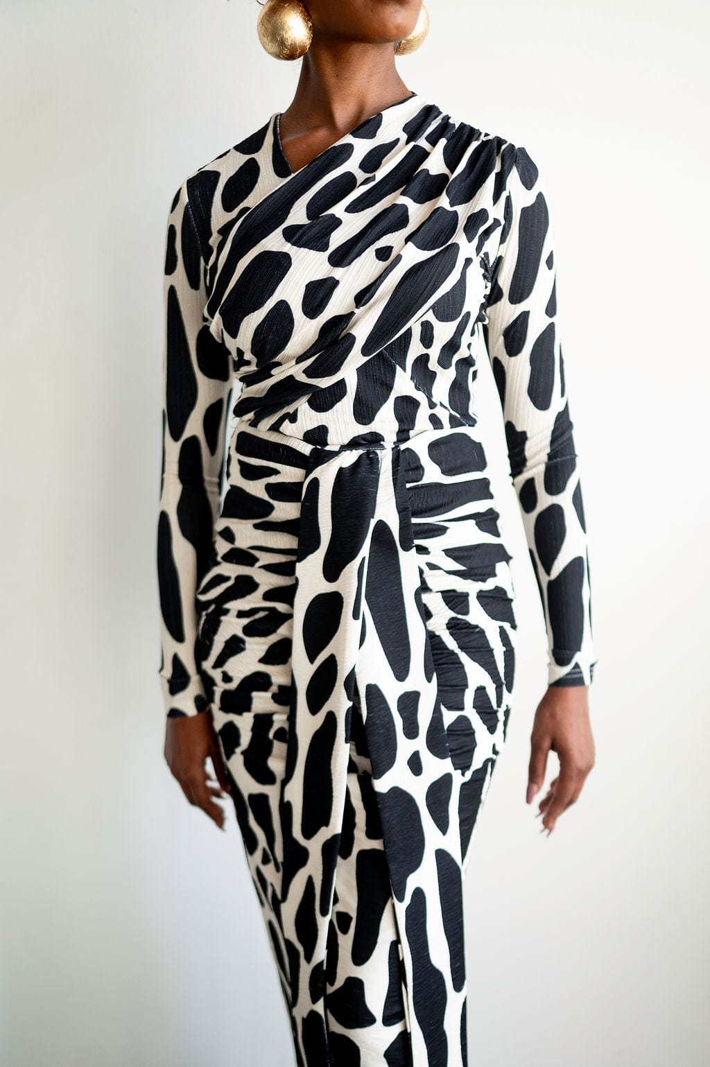 Introducing the Lala Asymmetrical Long Sleeve Top! This stunning black and white top adds a bold and chic touch to any outfit. Its unique asymmetrical design is both eye-catching and flattering. Pair it with our matching skirt for a complete and stylish look.