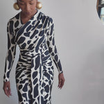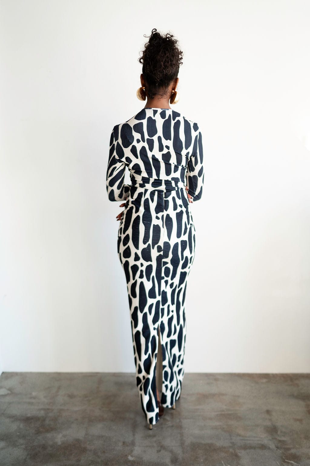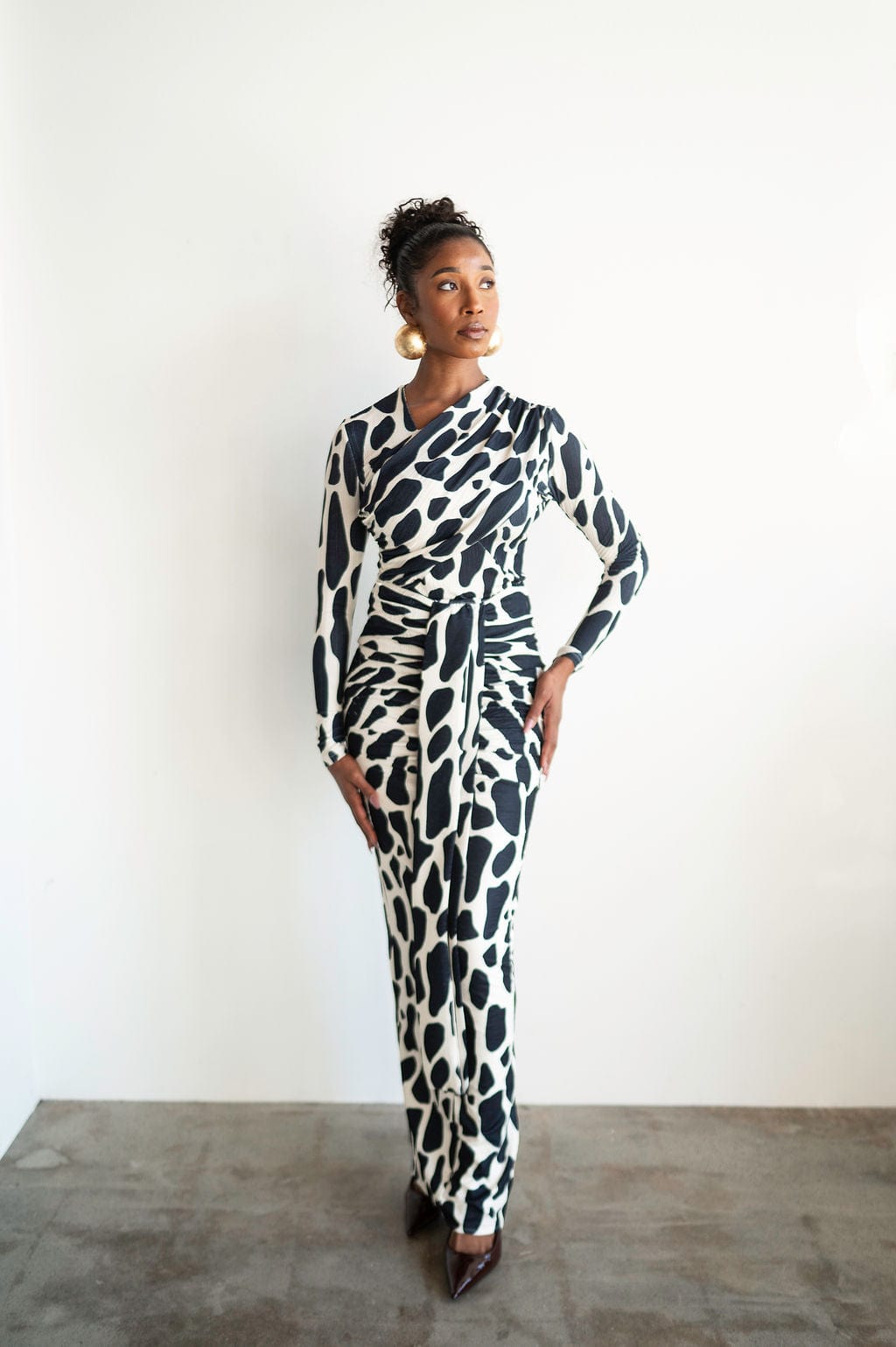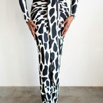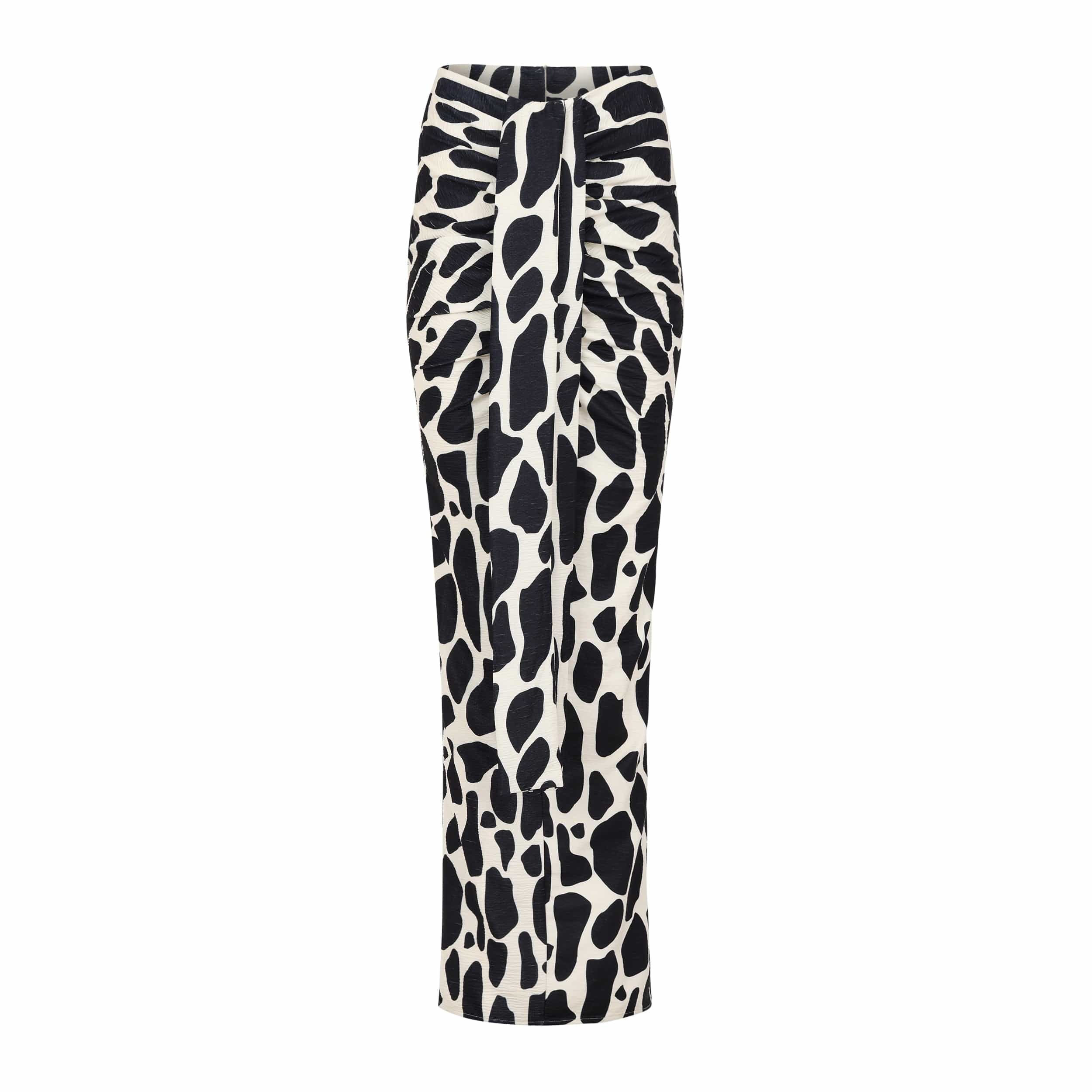 Introducing the Lala Ruched Maxi Skirt, a stunning and bold addition to your wardrobe. The black and white design pairs perfectly with the Lala asymmetrical top, creating a timeless and on-trend look. Elevate your style with this must-have piece!