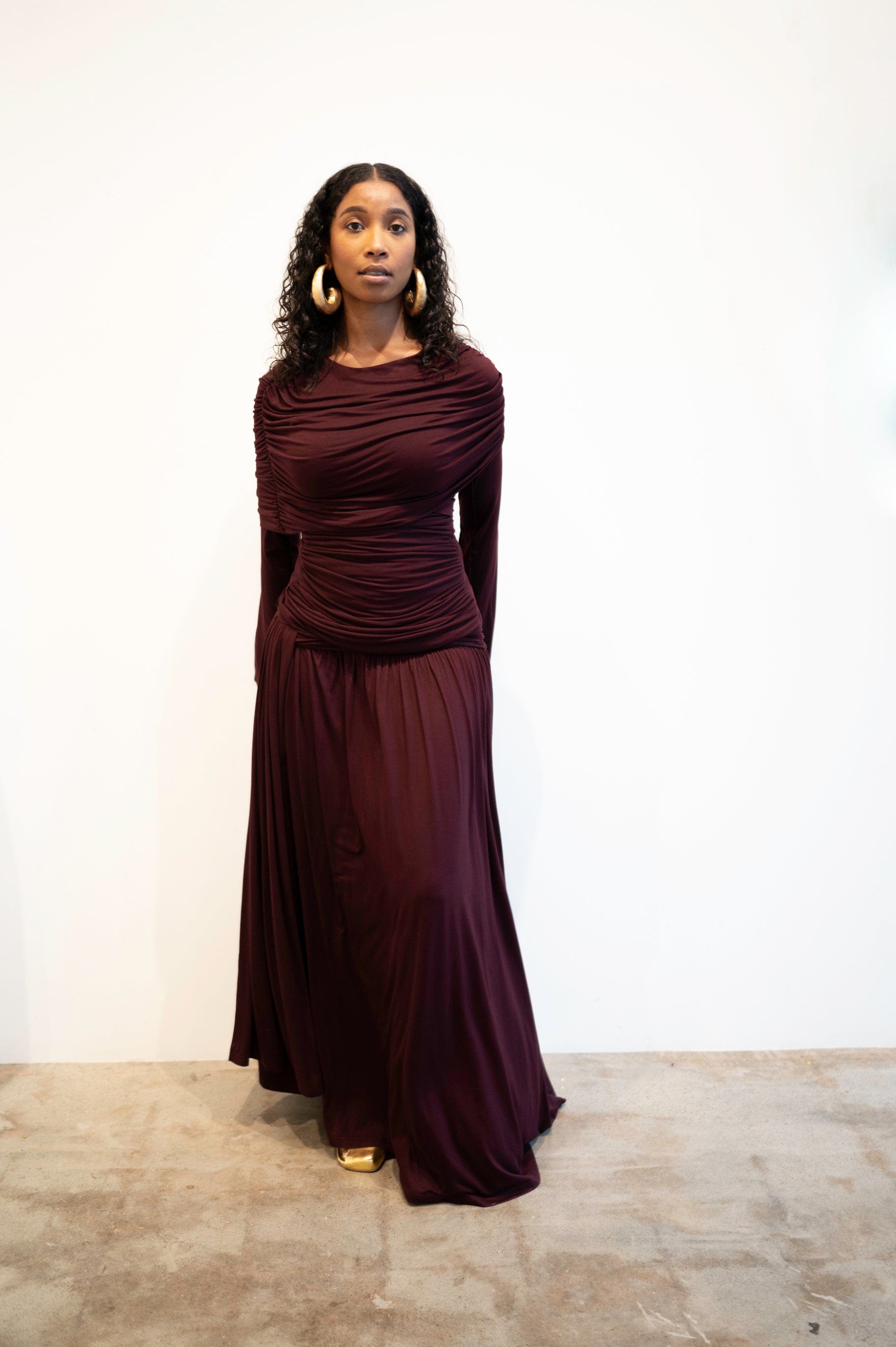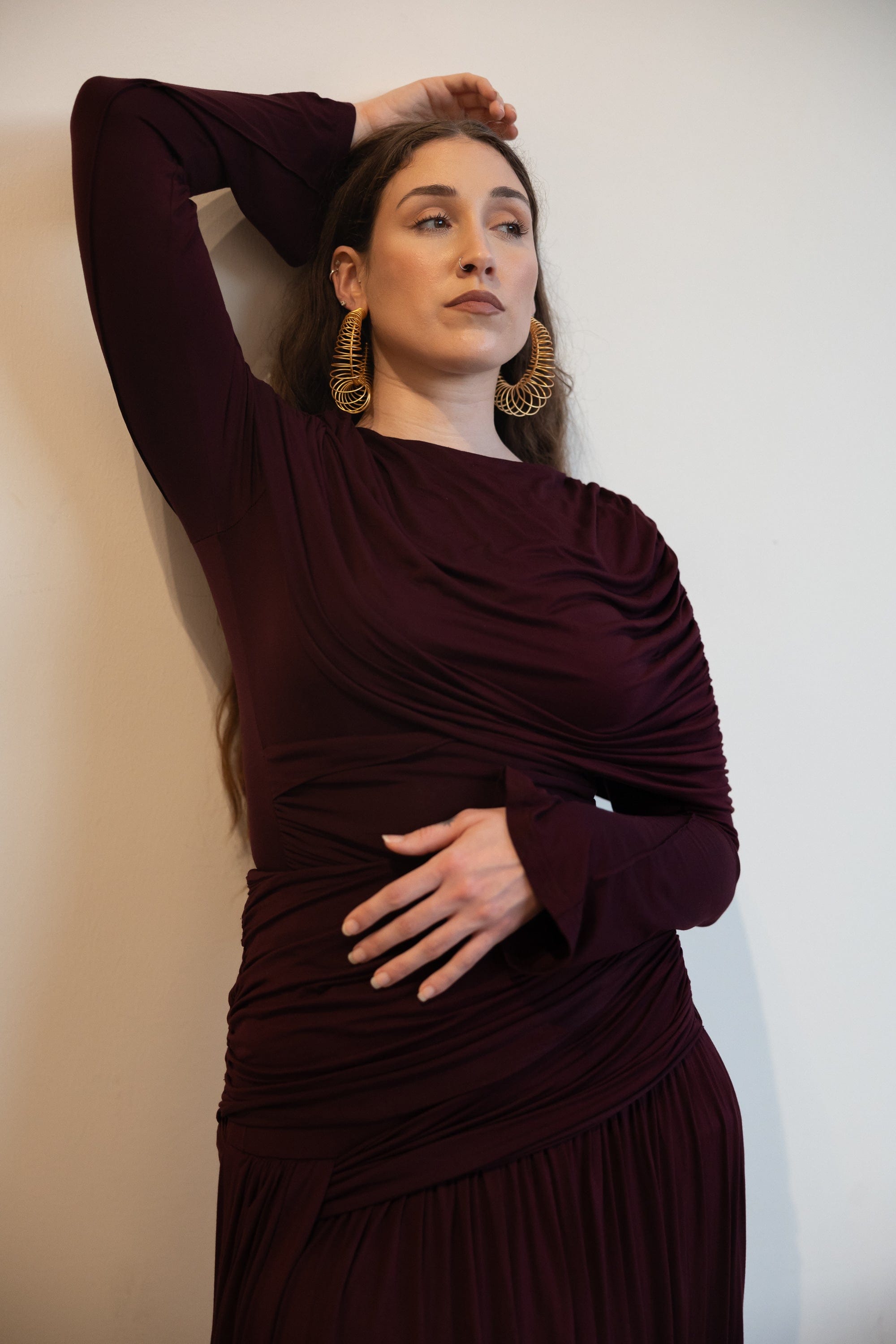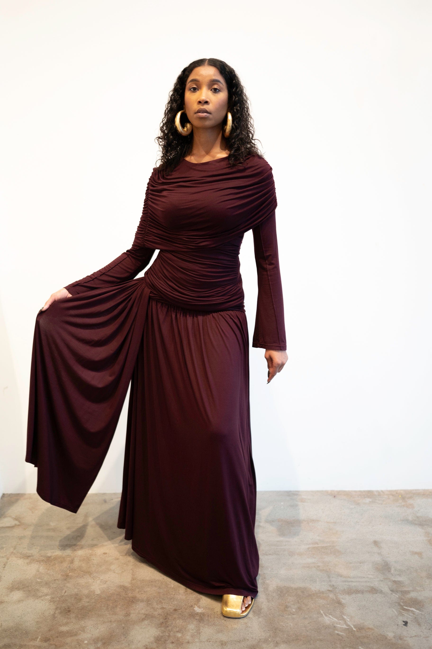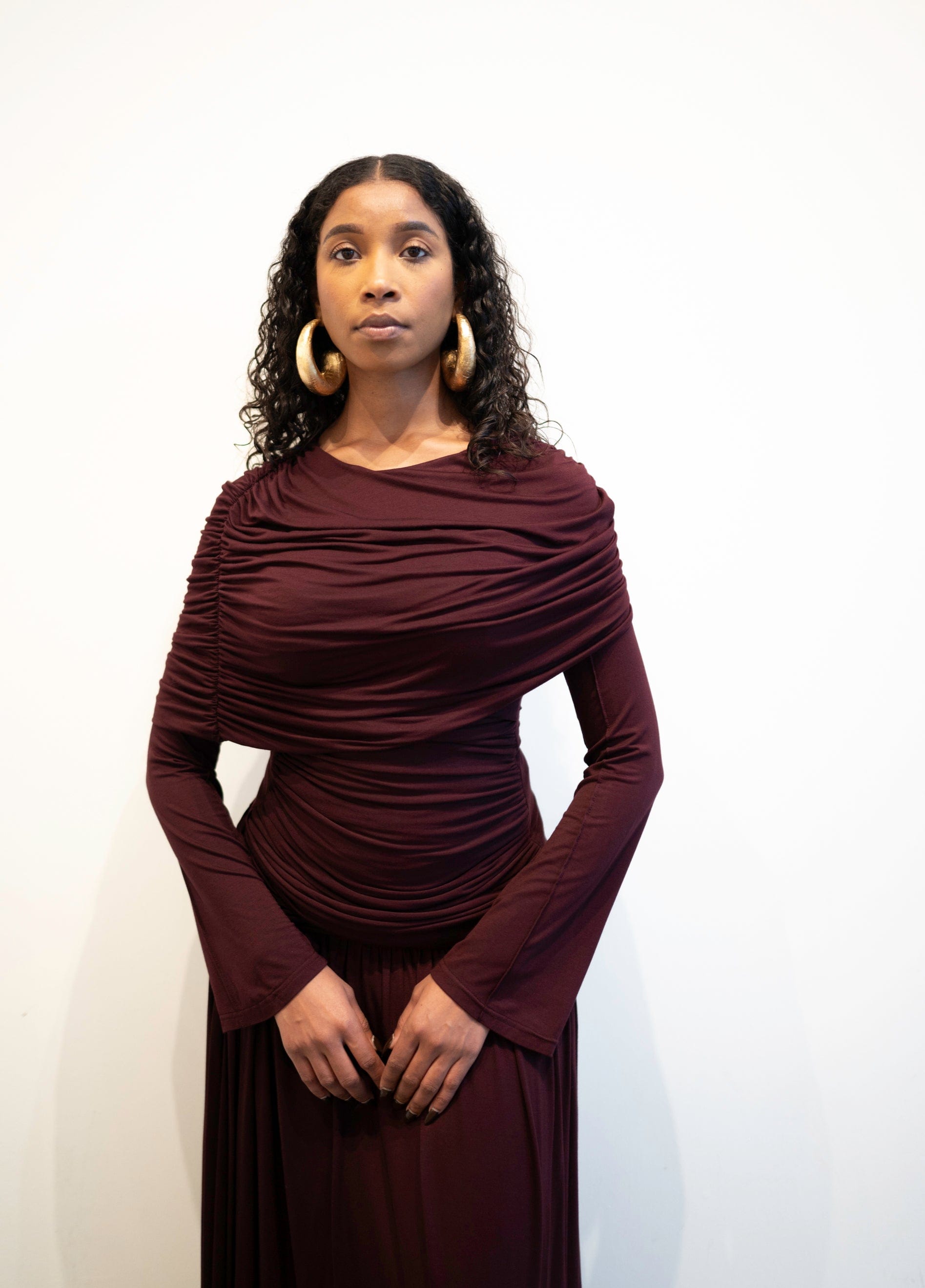 Experience ultimate comfort and style with the Lira Long Sleeved Draped Shoulder Top. Made with soft fabric, this top is perfect for any occasion. Its versatile design allows you to pair it with a skirt for a stylish and effortless look. Elevate your wardrobe with this must-have piece!