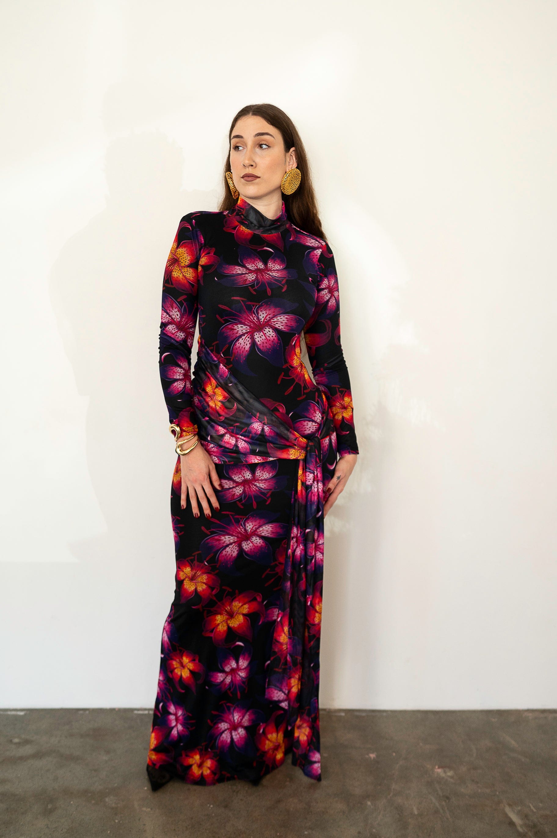Elevate your wardrobe with the Liv Long Sleeve Mesh Dress in Bloom. Featuring a stunning mesh fabric adorned with a beautiful print, this dress is sure to turn heads. The draped sash overlay allows for endless styling options, making it a versatile and must-have addition to your collection. Dress it up or down and make a statement with every wear!