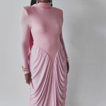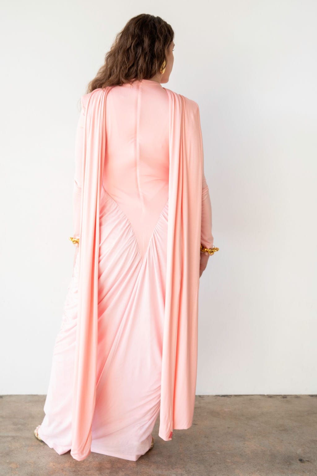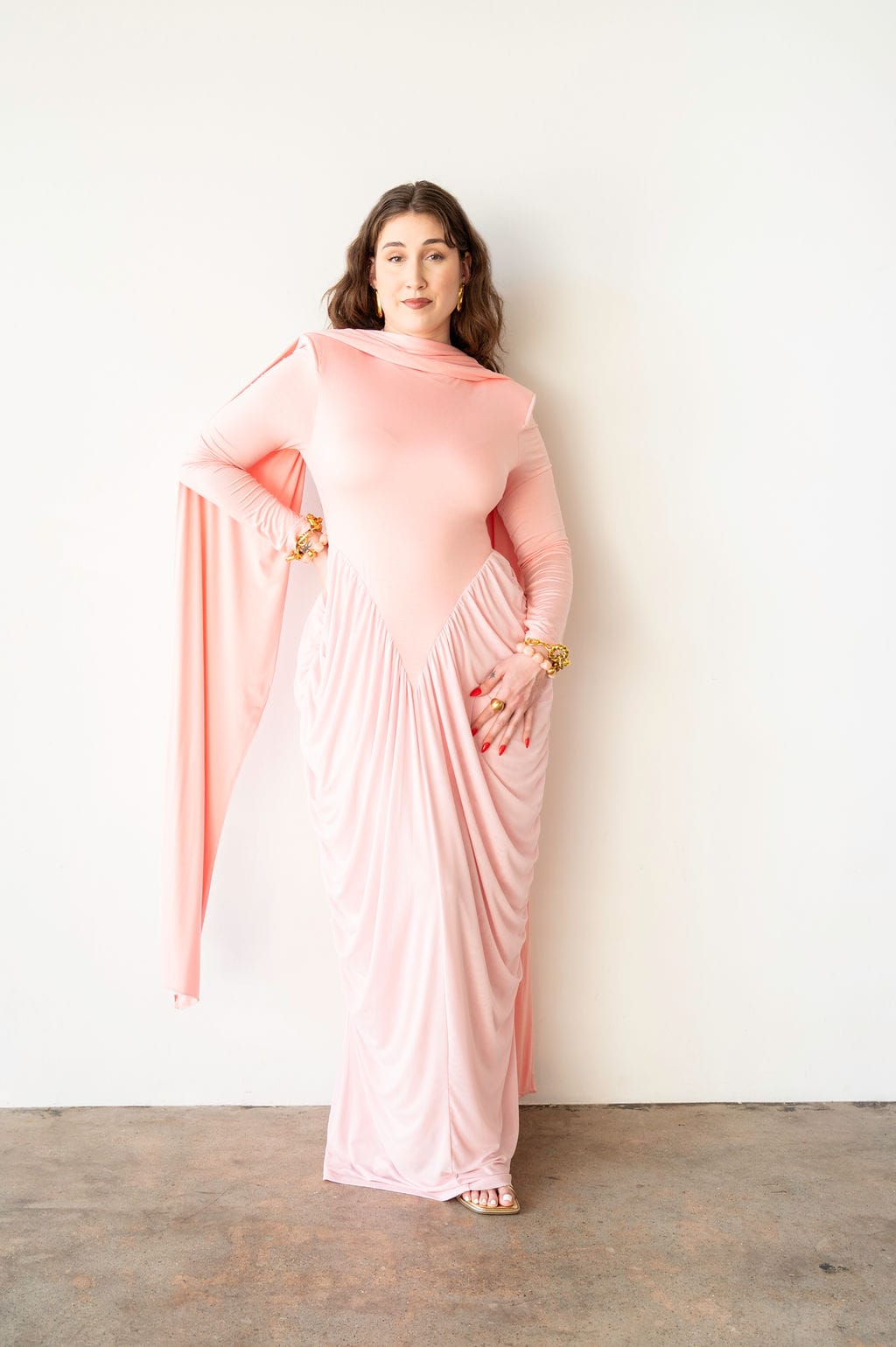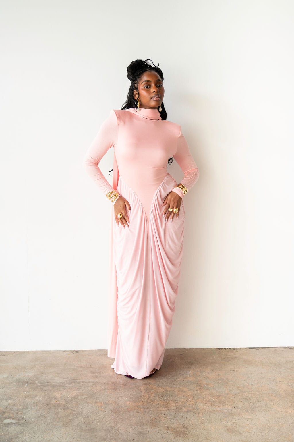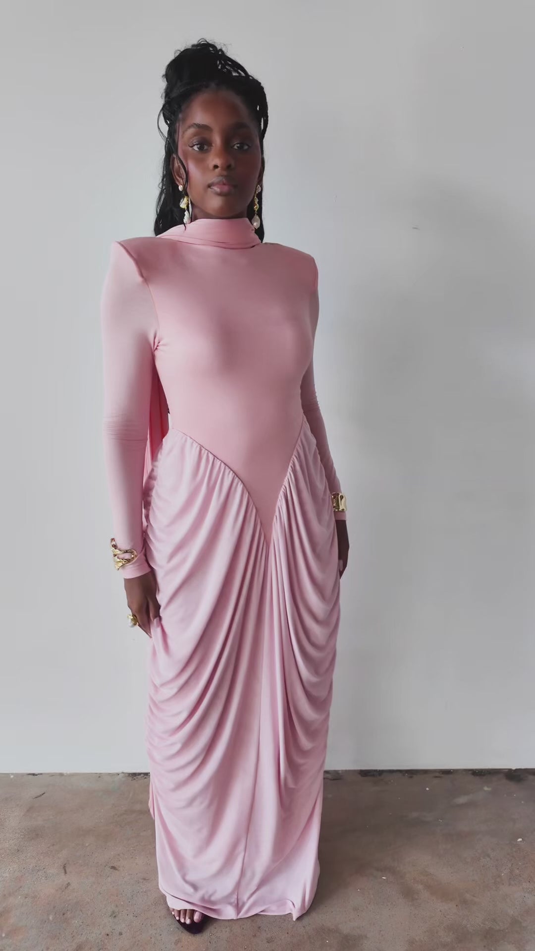 Luvie Long Sleeve Maxi Dress with Scarf in Baby Pink