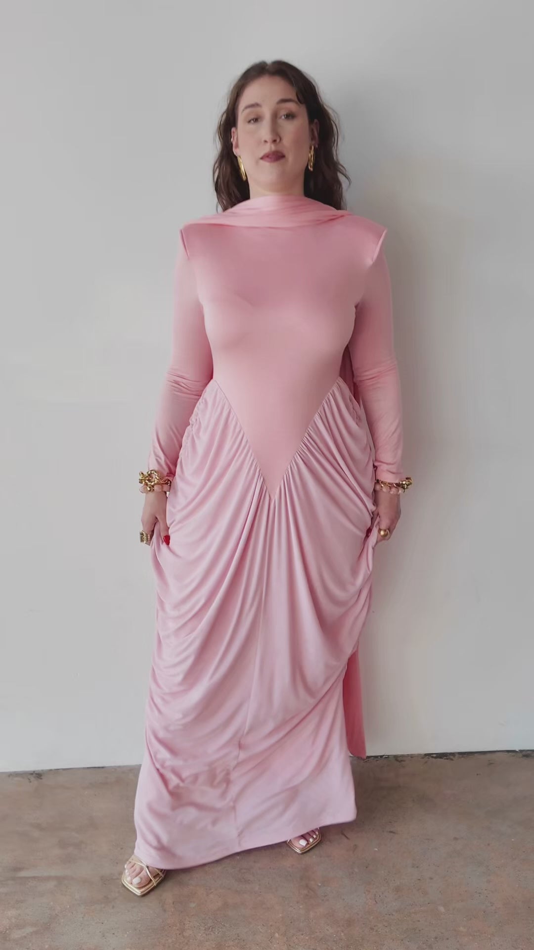 The Luvie Long Sleeve Maxi Dress with Scarf in Baby Pink embodies timeless elegance with a soft, feminine touch. Crafted from lightweight, breathable fabric, this dress features a flowing maxi silhouette that drapes beautifully on all body types. The long sleeves add a refined look, while the matching scarf enhances its graceful charm, making it perfect for both casual and special occasions. Its relaxed yet flattering fit ensures comfort without compromising on style. Pair it with heels or flats for an effortlessly chic outfit.