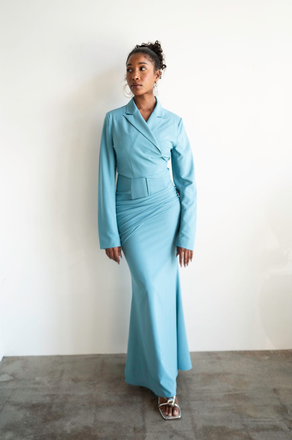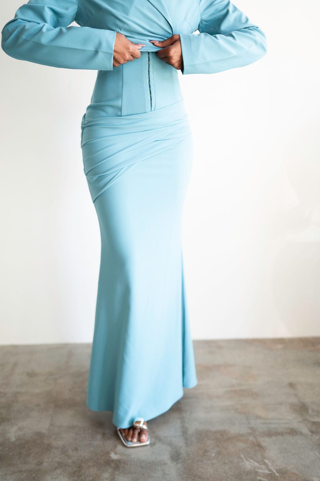 Elevate your style with our Maida Maxi Skirt! With a bold design and a corset waist to define your figure, you'll feel confident and chic in our unique blue skirt. Perfect for any occasion, this skirt is a must-have for any fashion-forward individual.