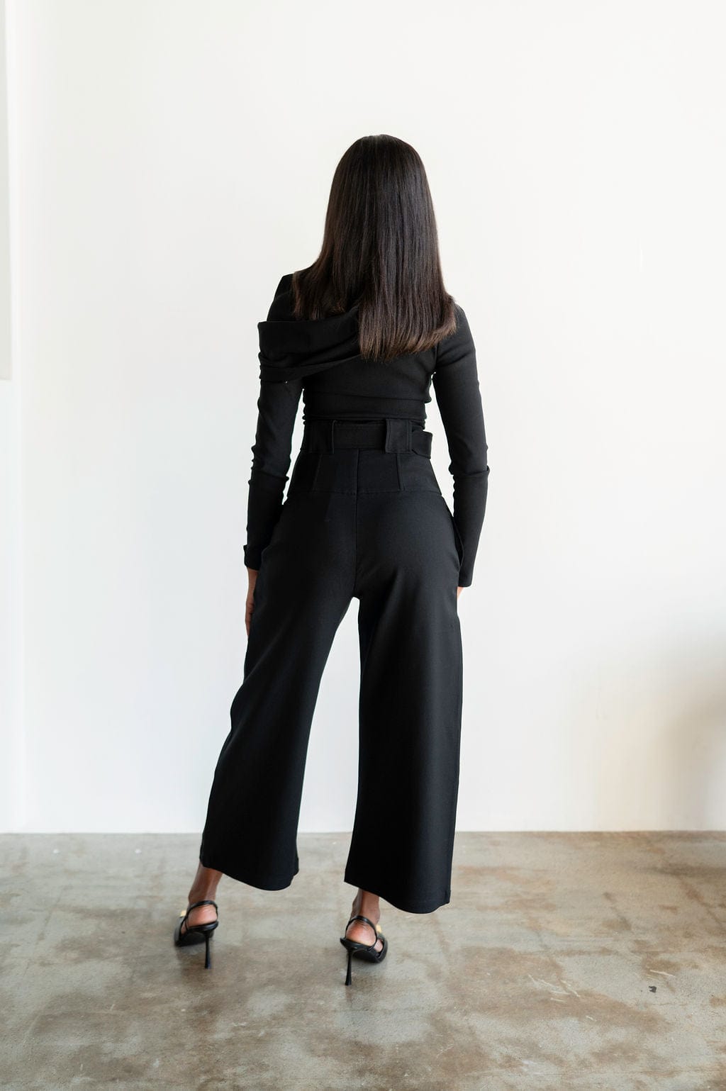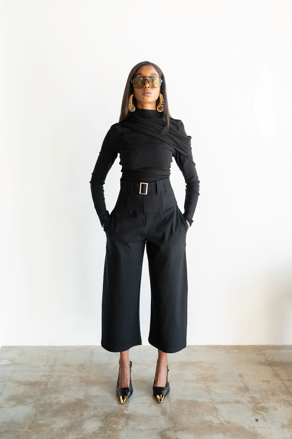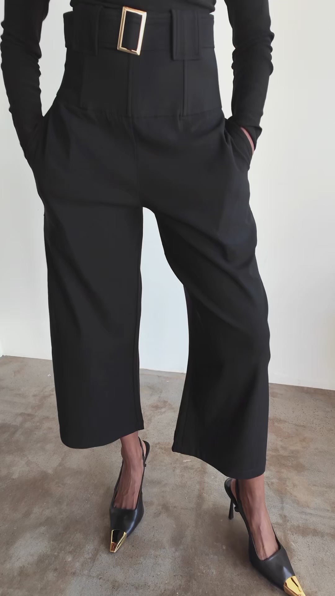 Nia High Waisted Corset Barrel Cropped Pants in Black