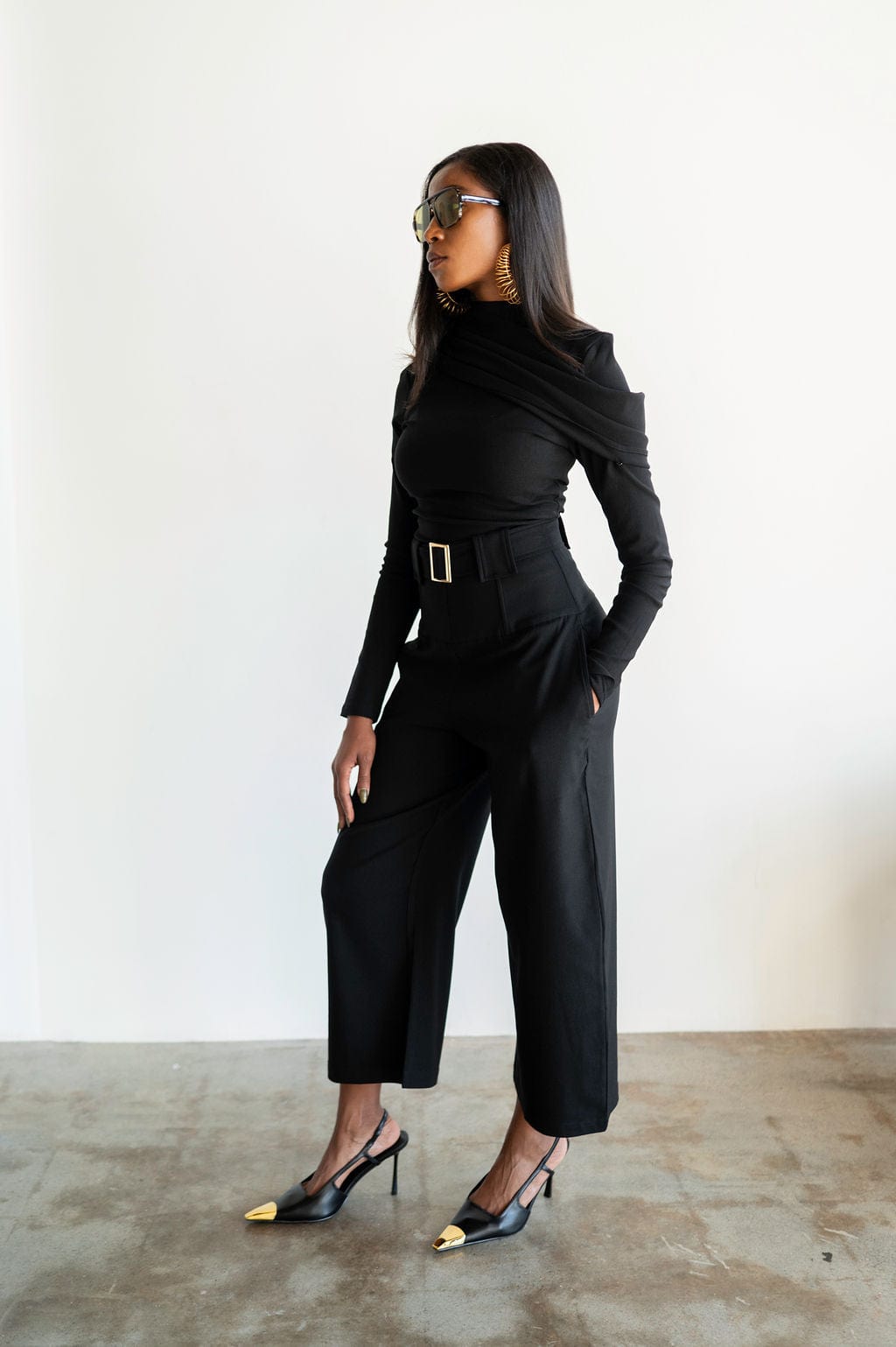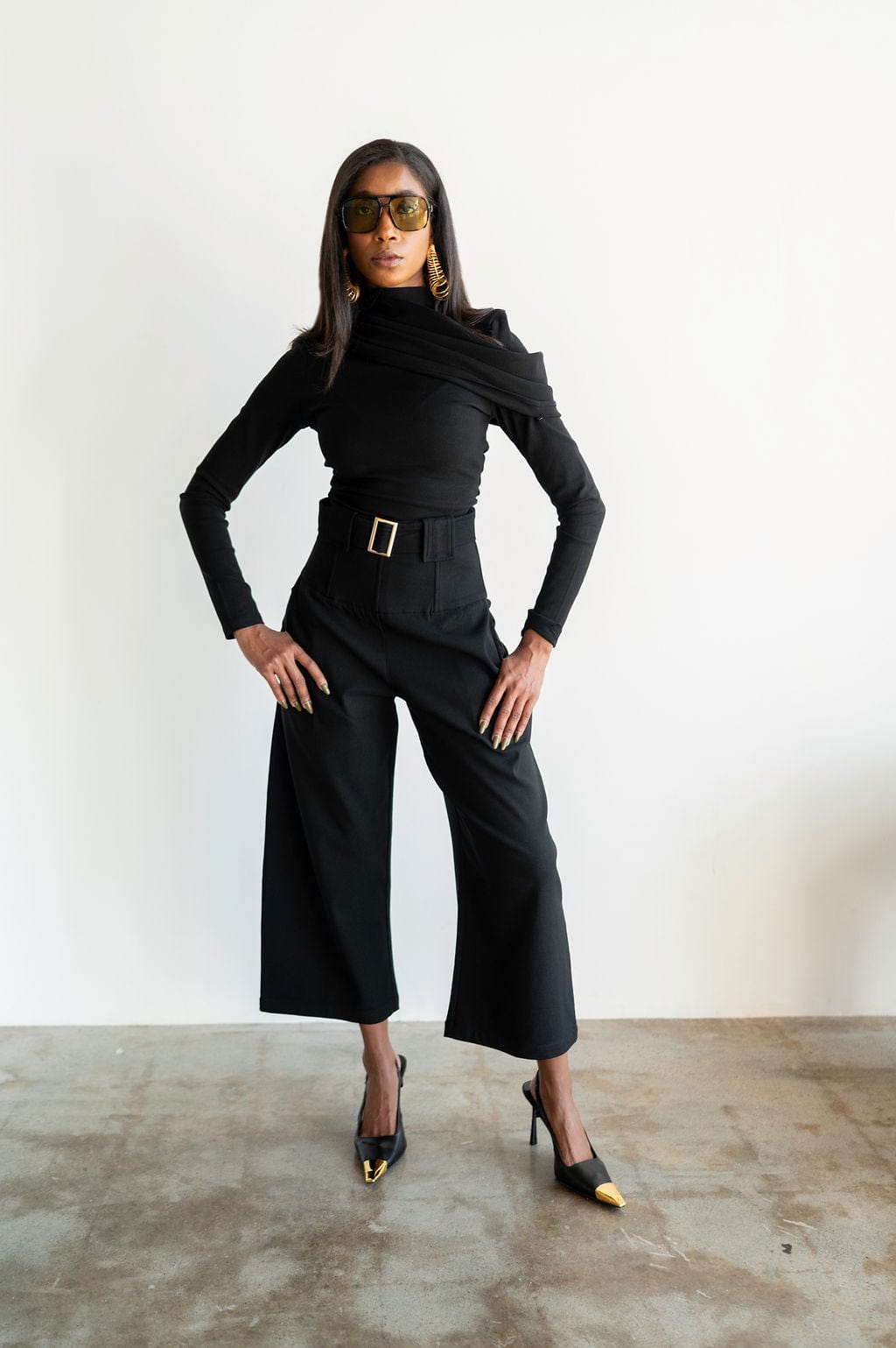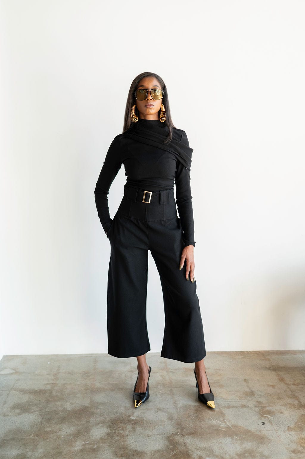 Nia High Waisted Corset Barrel Cropped Pants in Black