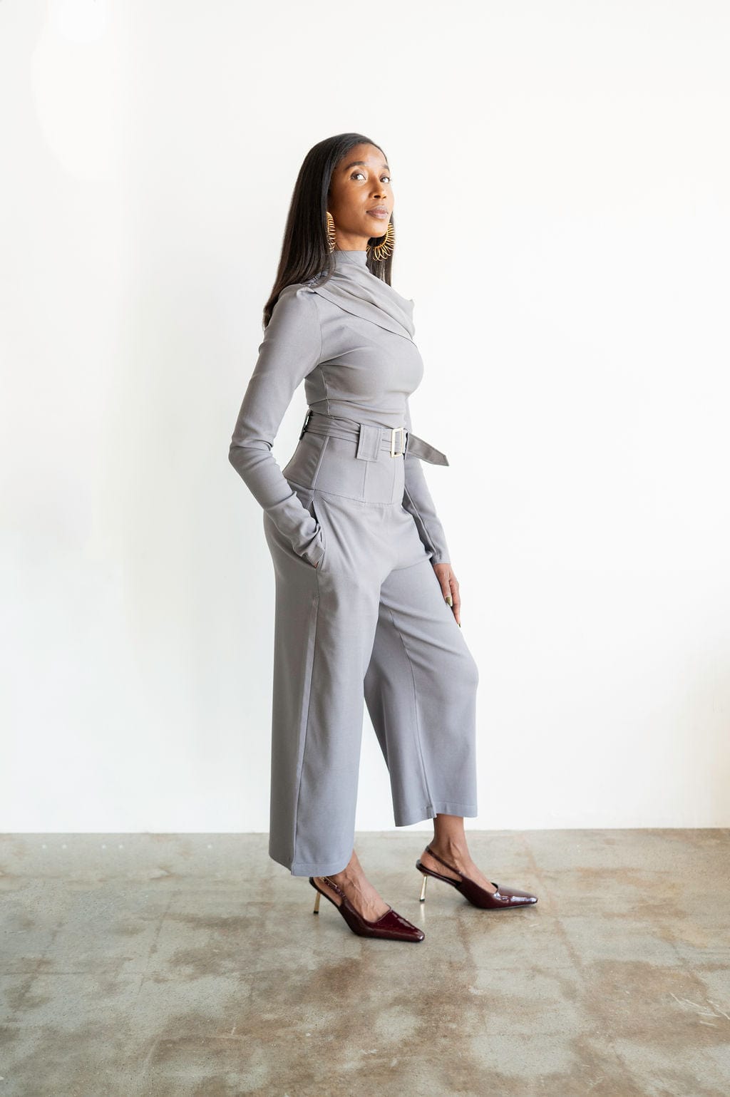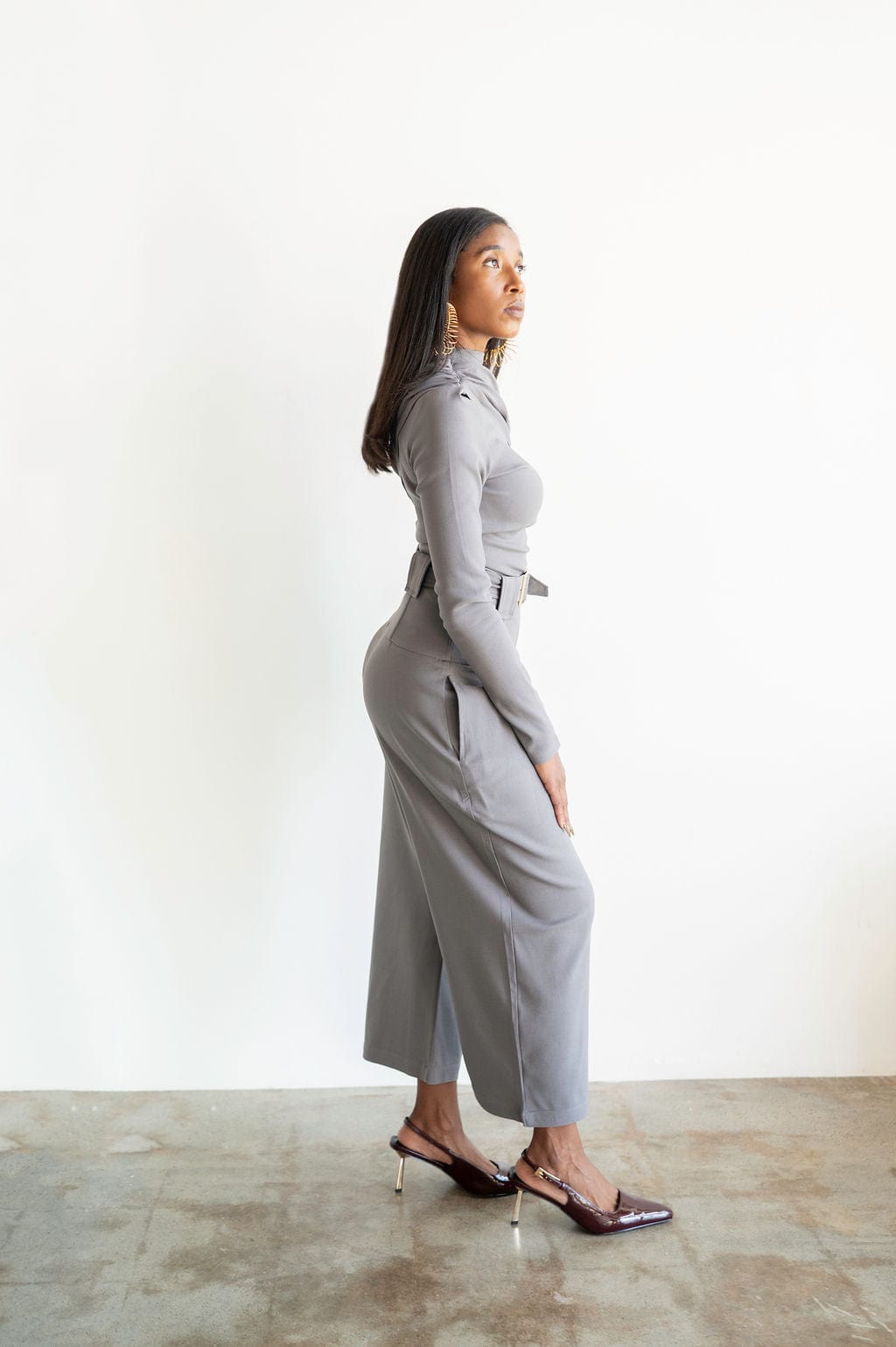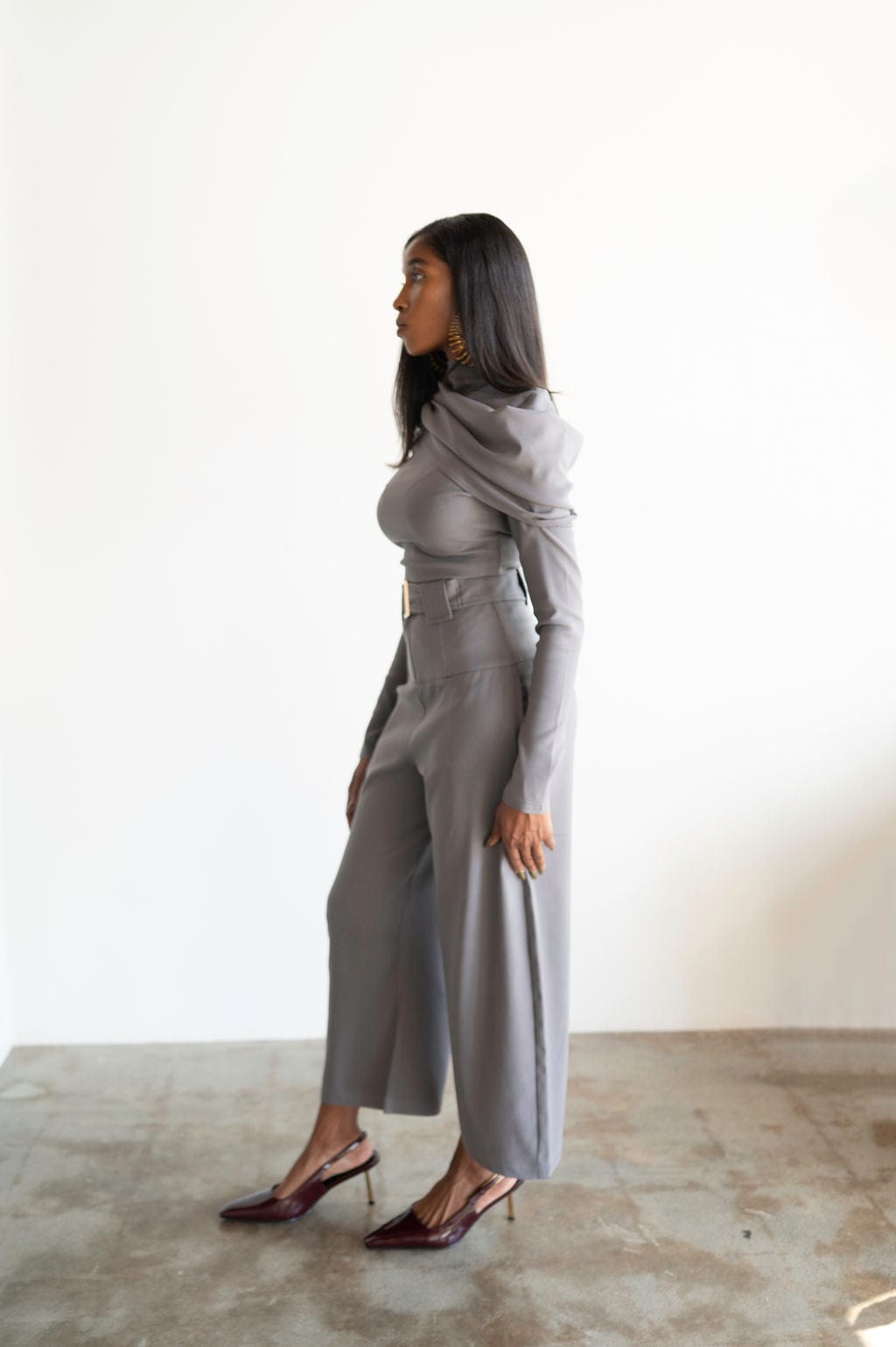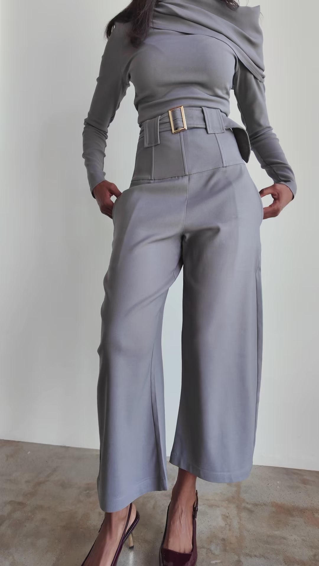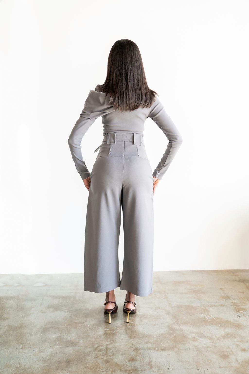 Nia High Waisted Corset Barrel Cropped Pants in Grey