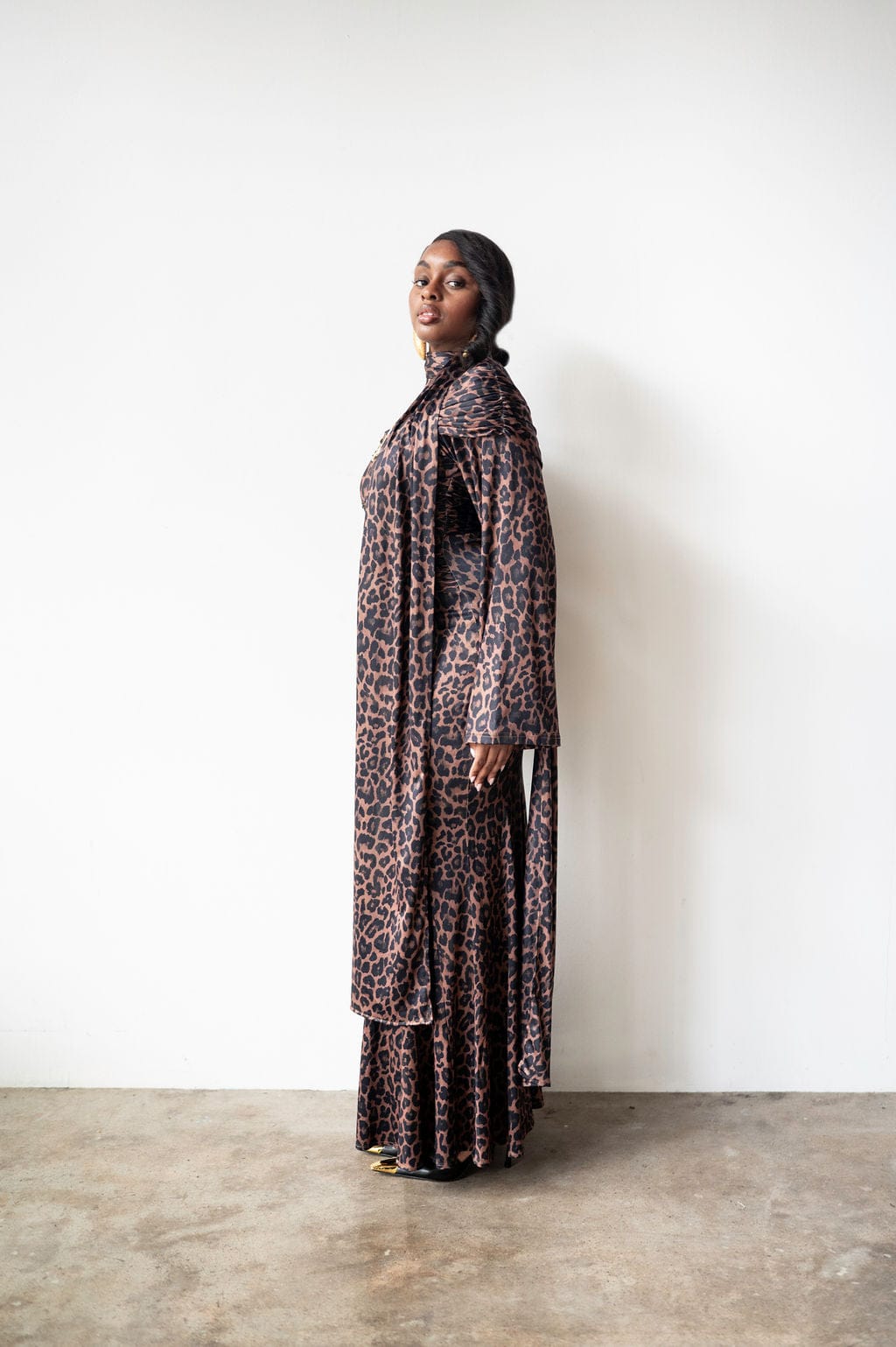 The Nur Long Sleeve Flared Maxi Dress with Scarf in Leopard combines bold elegance with flowing sophistication. Crafted from soft, breathable fabric, this dress features a flared maxi silhouette that flatters all body shapes. The matching scarf adds versatile styling options, perfect for casual outings, work, or special occasions. Its long sleeves and high-quality material provide comfort while maintaining a polished, chic look. Pair it with heels, flats, or statement accessories for a standout ensemble.