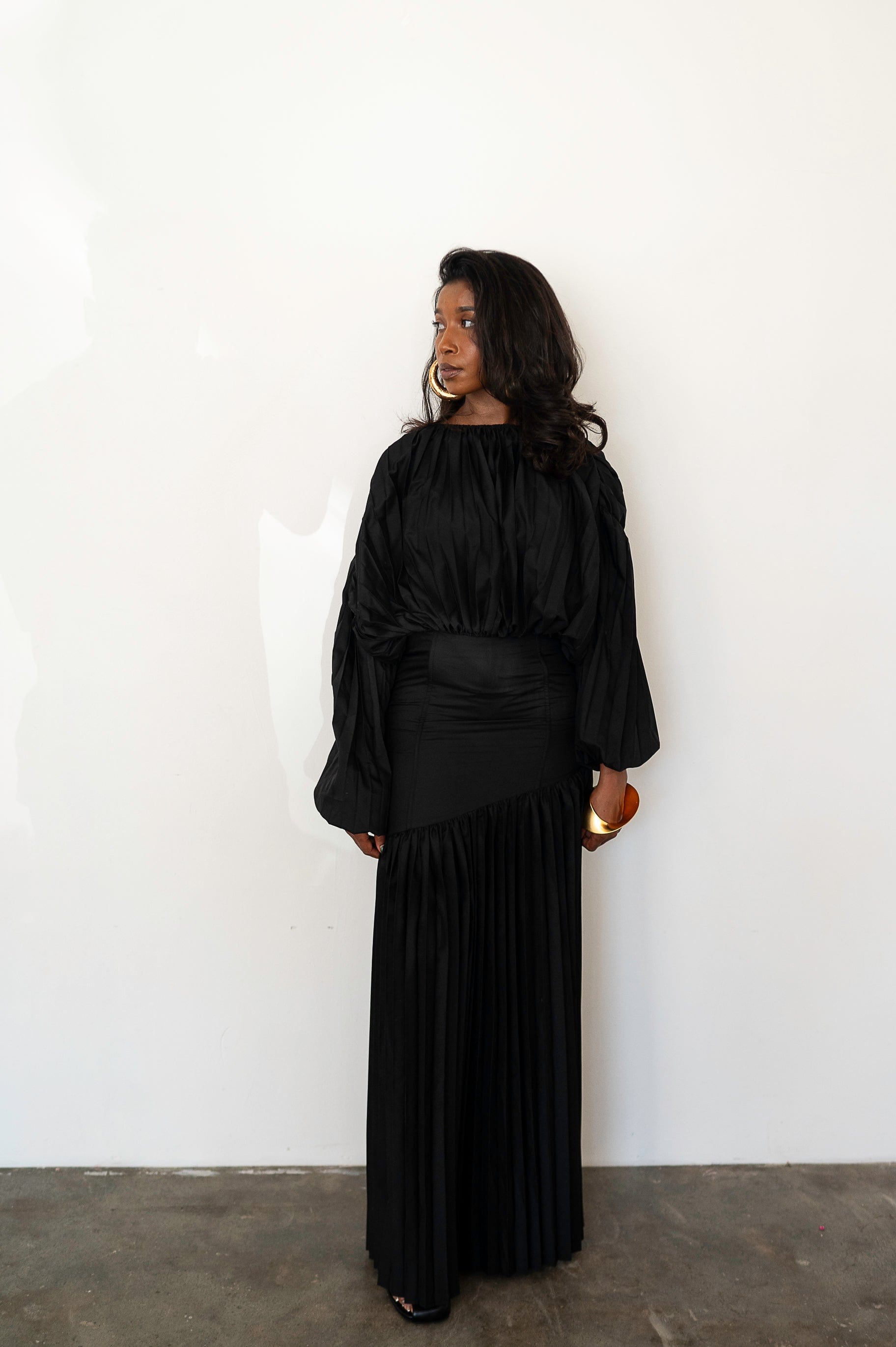 Olive Oversized Shirt and High Waist Corset Skirt Set in Midnight