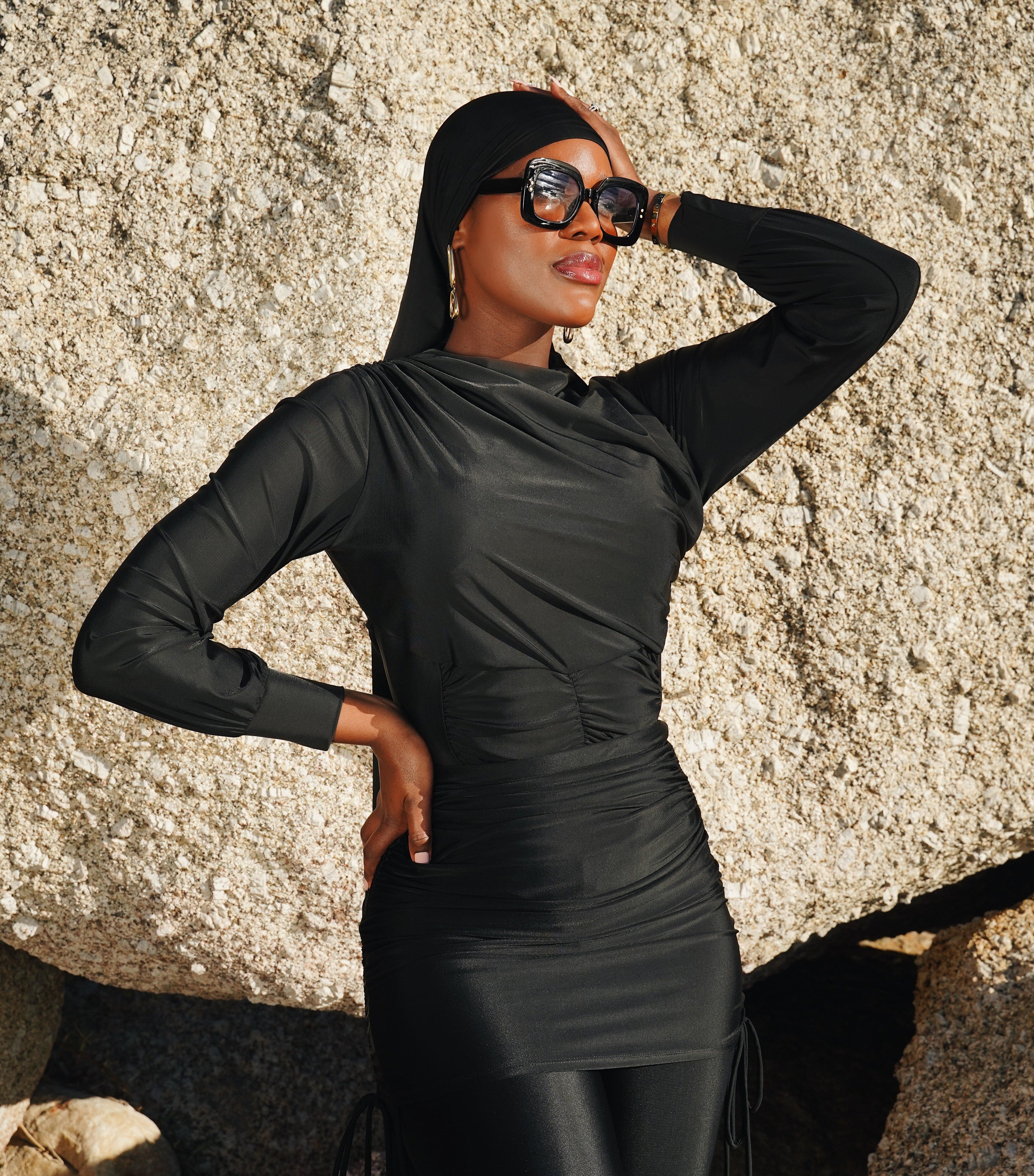 Oma in the Yoruba language means "thriving." Believe us, you will thrive as soon as you put her on. She is draped throughout the body suit and skirt and is ideal for your next vacation, staycation or fun day at the pool. Bold and beautiful, soft and feminine, how dare we achieve both? It's time to ditch the gym shirts and leggings ladies...