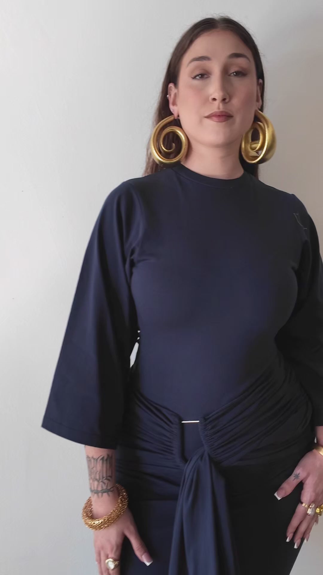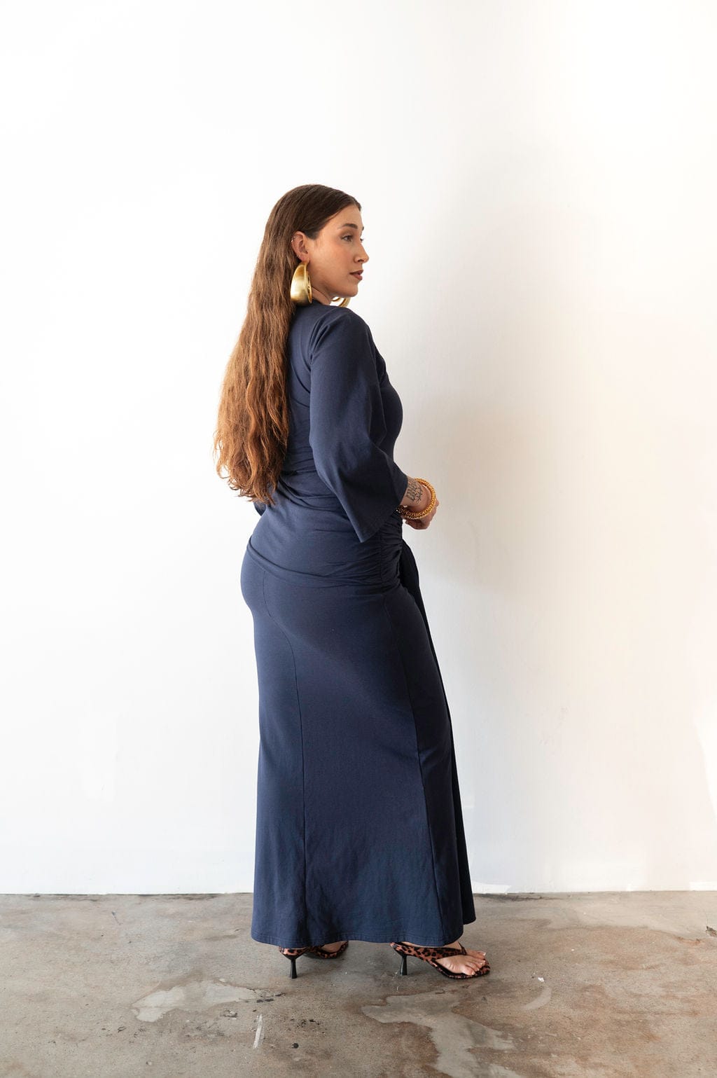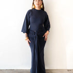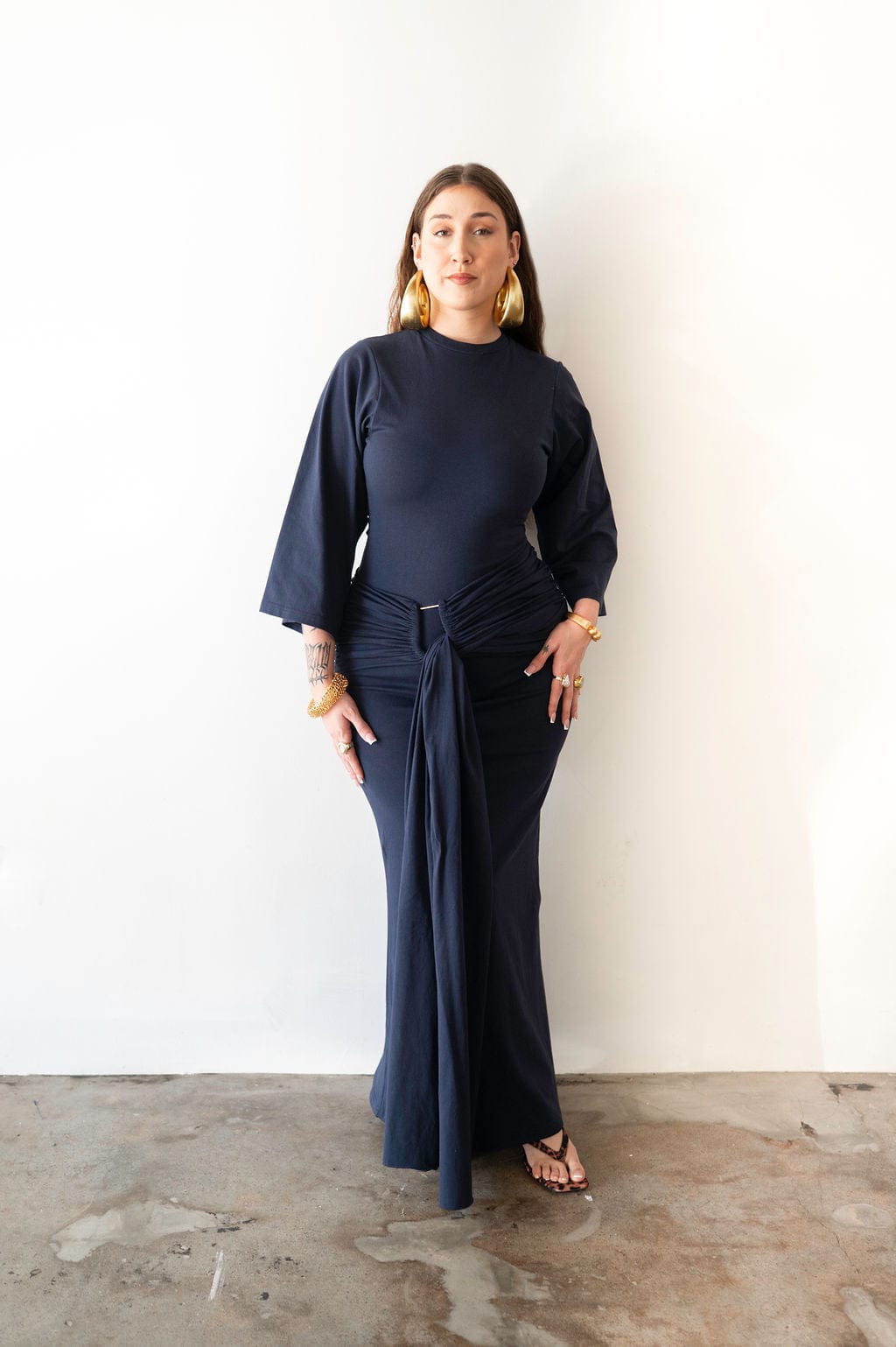 - Draping detail across the front and back